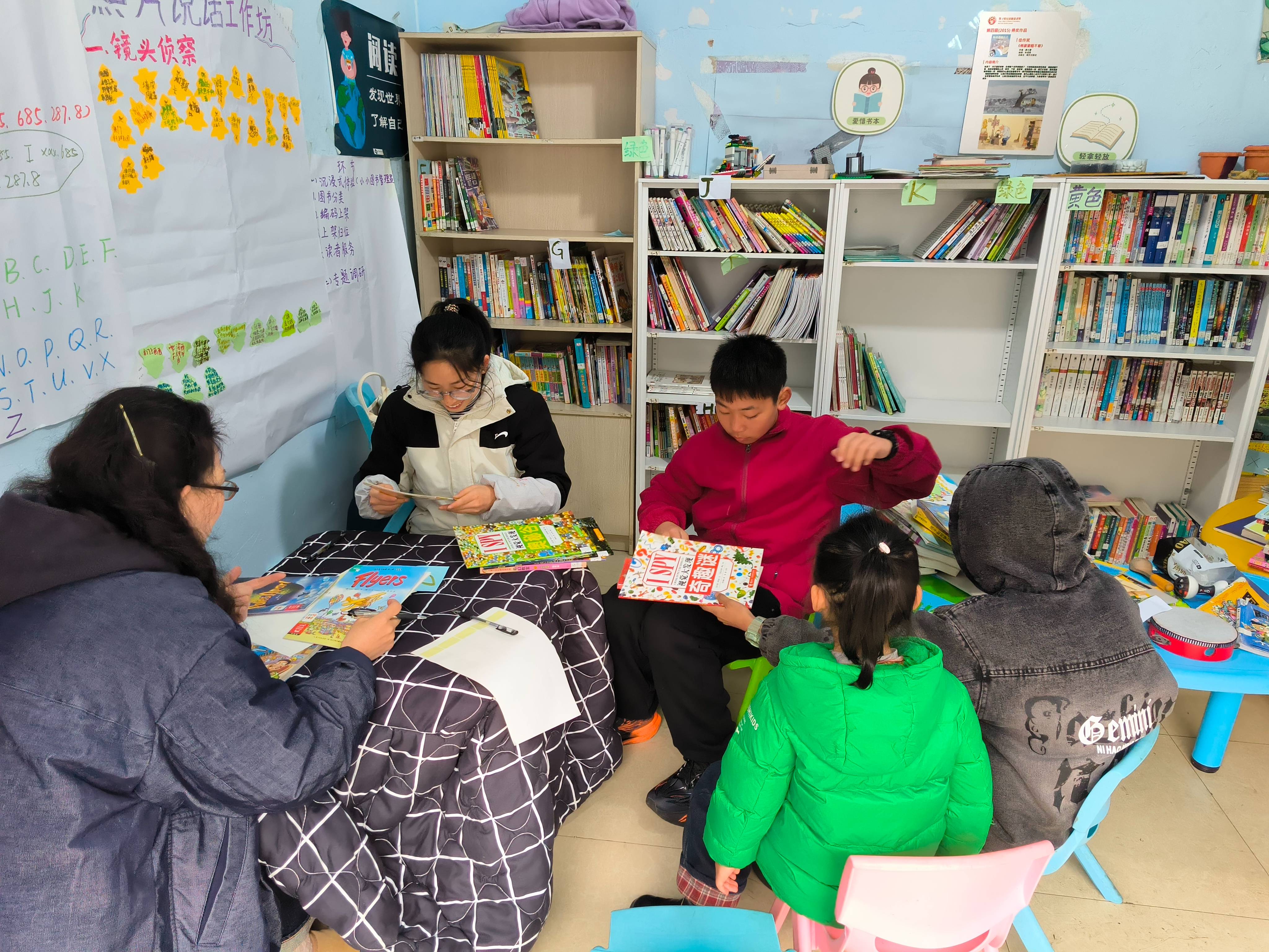 最近都比较忙,和志愿者一起整理书籍,编码上架,儿童作为志愿者也全程参与其中......