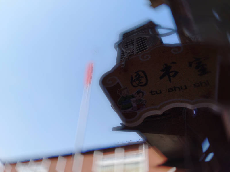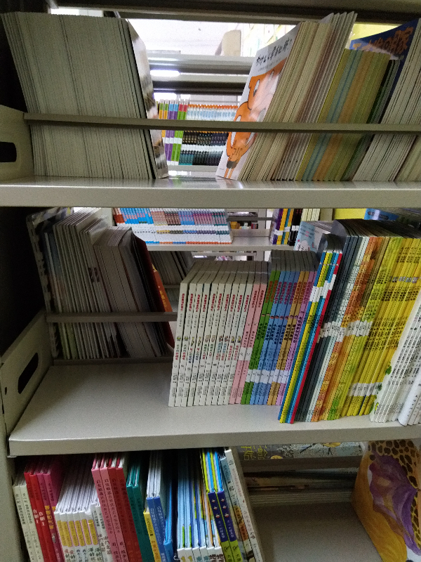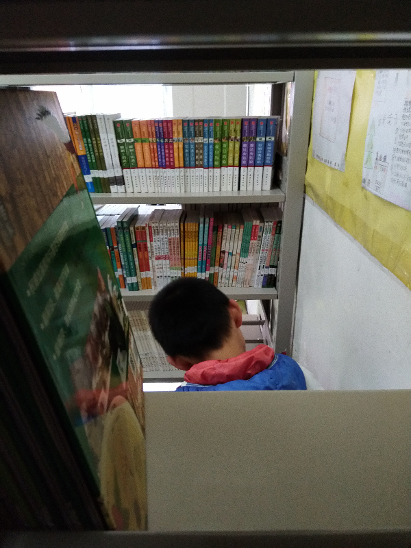 午餐后我们继续整理书籍分类,主要是哲学文学类有点相互混淆,然后其他的分类稍做微调。有几个孩子来来回回地在图书馆门口转,我们忙也没顾上他们,终于,有仨大胆的孩子走进来,拿着借书卡问可以借书吗,我们说书暂时借不了,但可以在馆里面看。孩子们于是安静的在馆里看了会儿书,等到上课铃响,书归原位后就走了。