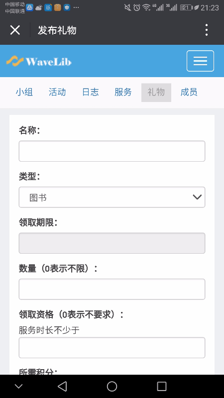 礼物要用积分来换,发布礼物时要标明所需积分。