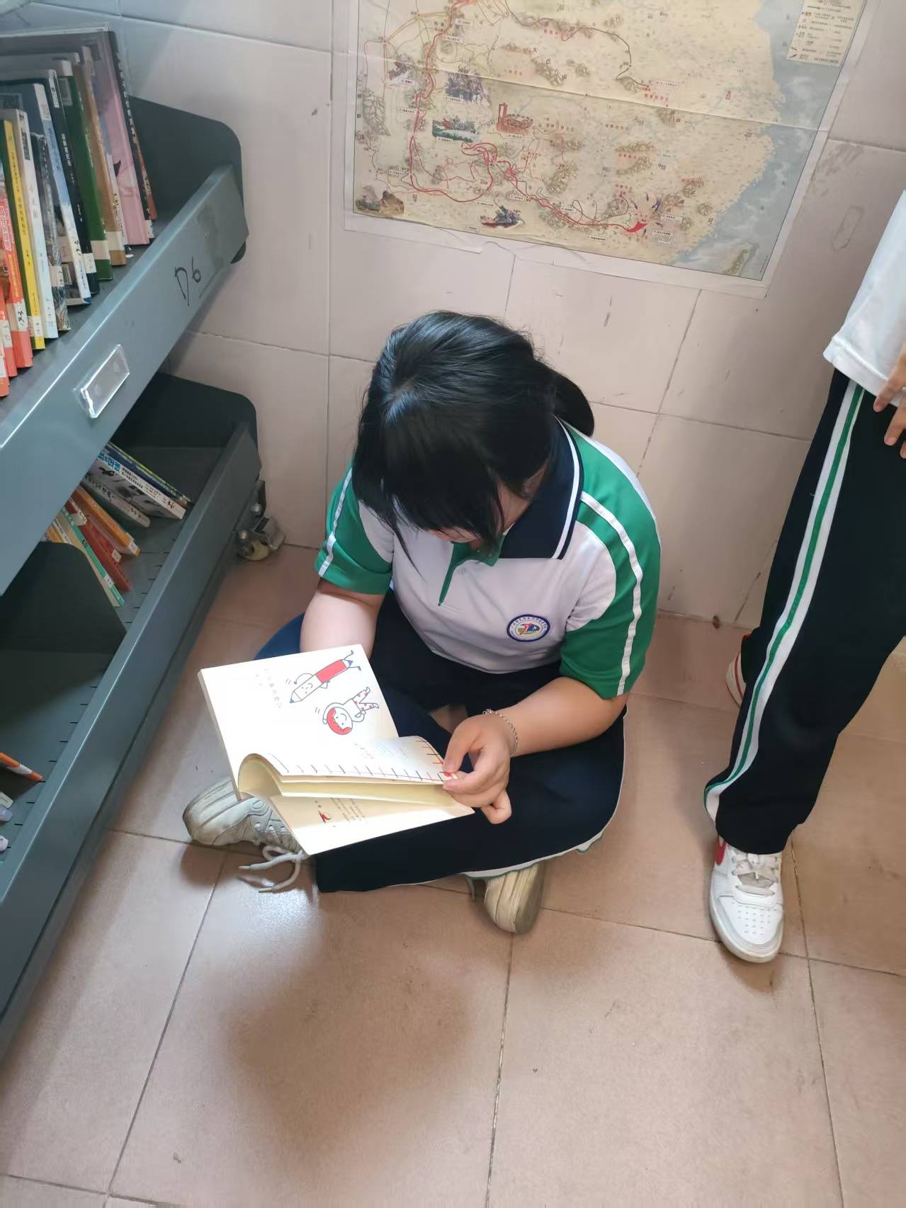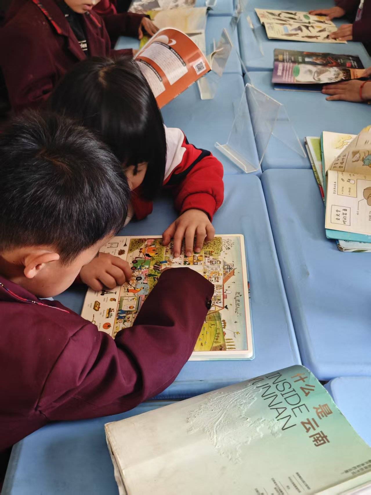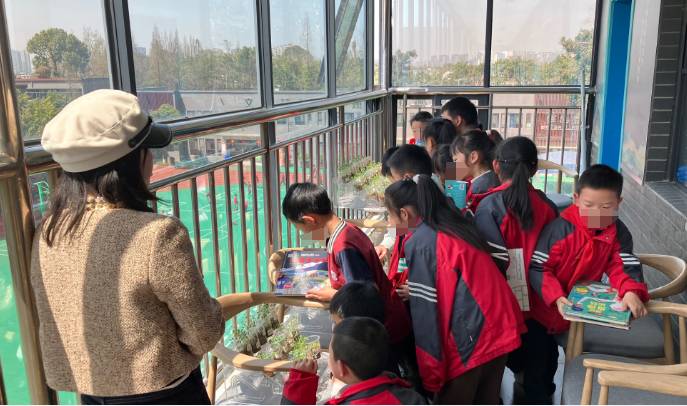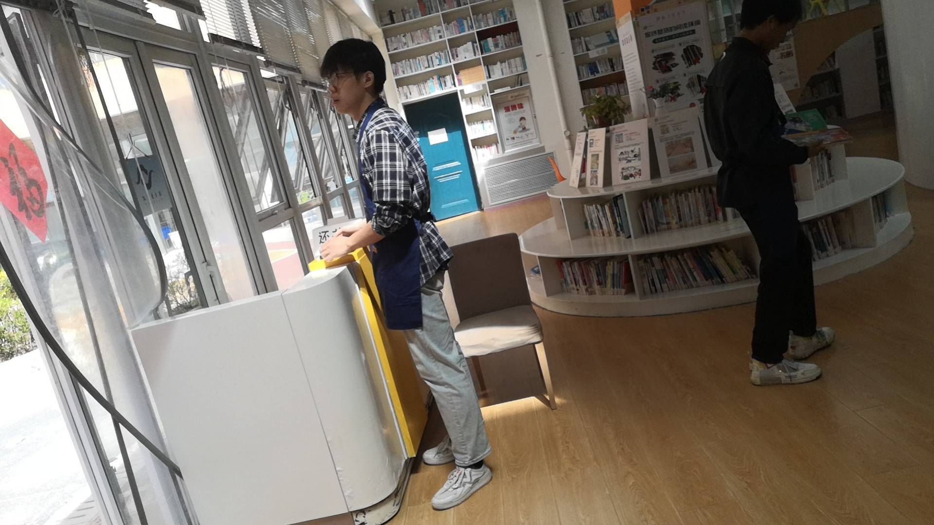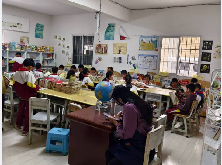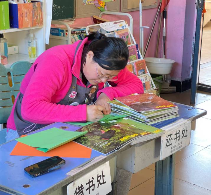 这里的学生们,同样也带给我满满的温暖。中午来的时候,在一楼教室门口值日的学生们看到我们,响亮的来一句“老师好”。前来借书还书的孩子们,也有许多暖心的小举动。他们不少人在把书递给我时,会贴心地将有益迪码的那一面朝向我,扫完后还会跟我讲“谢谢” ,让人心里满是感动。可是我埋头扫码,也没来得及抬头看看这些孩子们的脸。下次干活时,我要从容些,抬头多看看他们。
