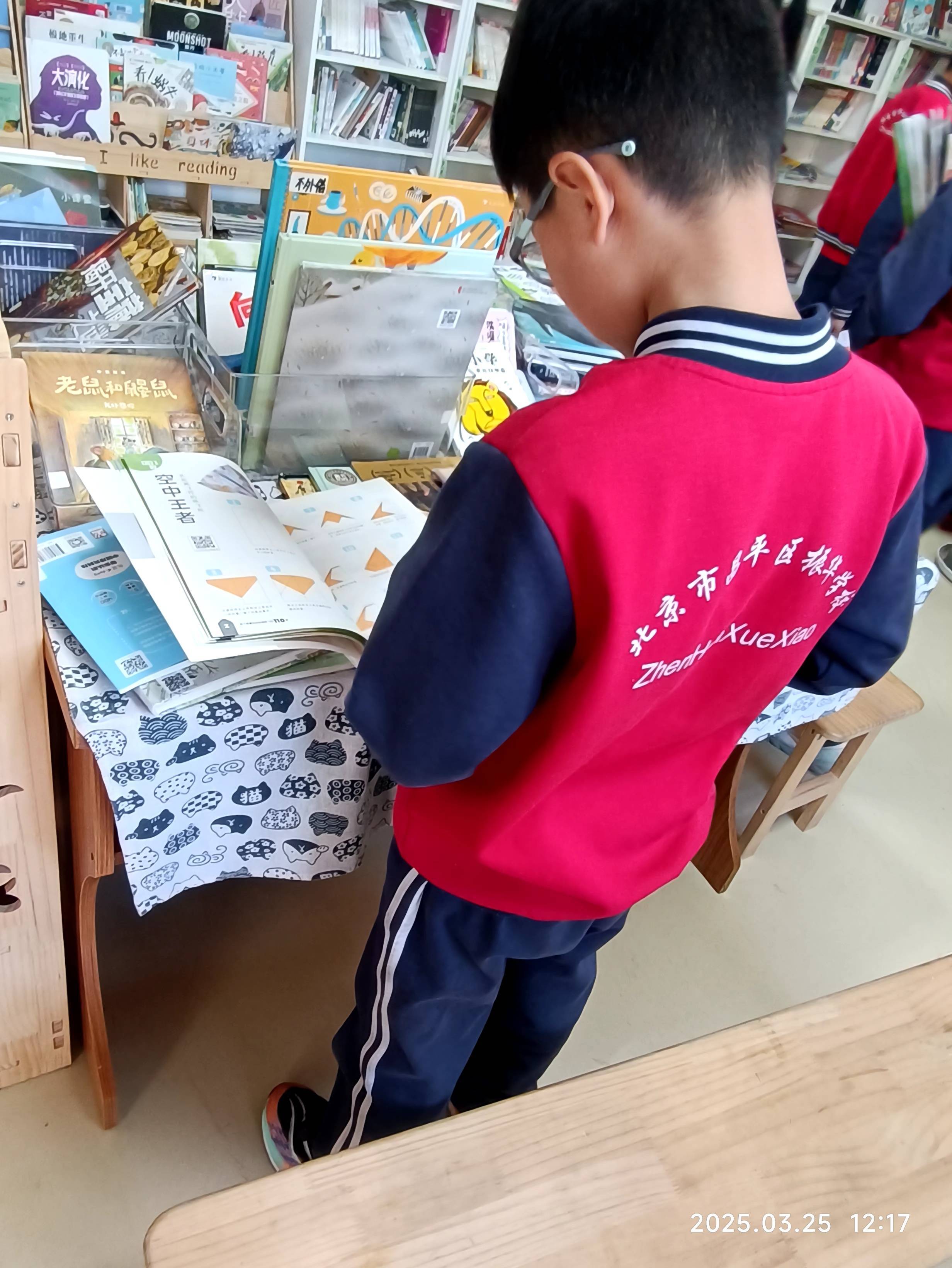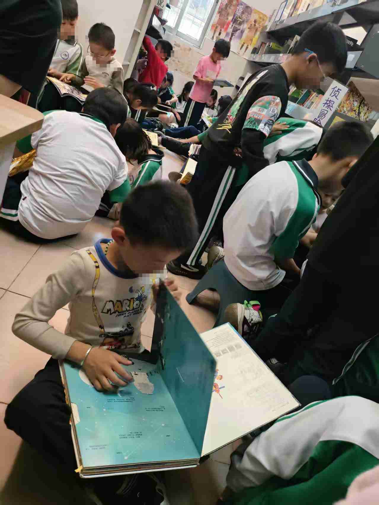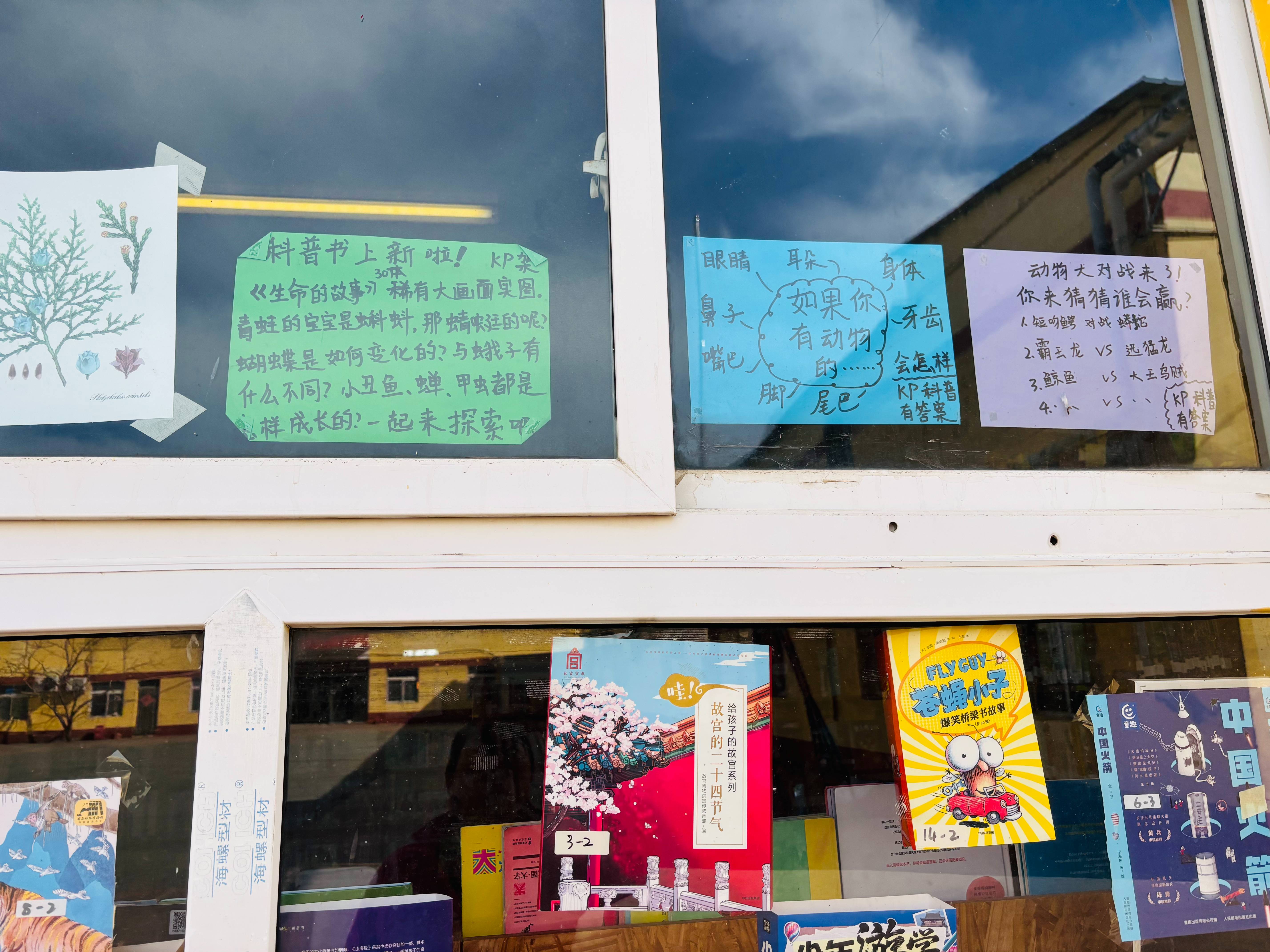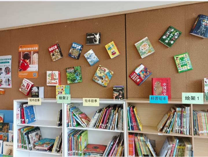 41 馆因为在二楼的缘故比较宽敞明亮,中间放置了孩子们现场读书的桌椅,对于课间去读书的孩子来说方便了许多。不过也因为书室离教室很近,所以图书馆成为孩子们课间的活动室,所以除了临放学的最后一个课间,其余的课间图书馆内都很热闹。但是这里的孩子被培训的很好,绝大多数都把书放回原位,只有极个别的书被藏在绘本后面,没有在原位,所以整理书架的时候发现不需要像 13 馆那样跑来跑去一直在忙着将书归位。