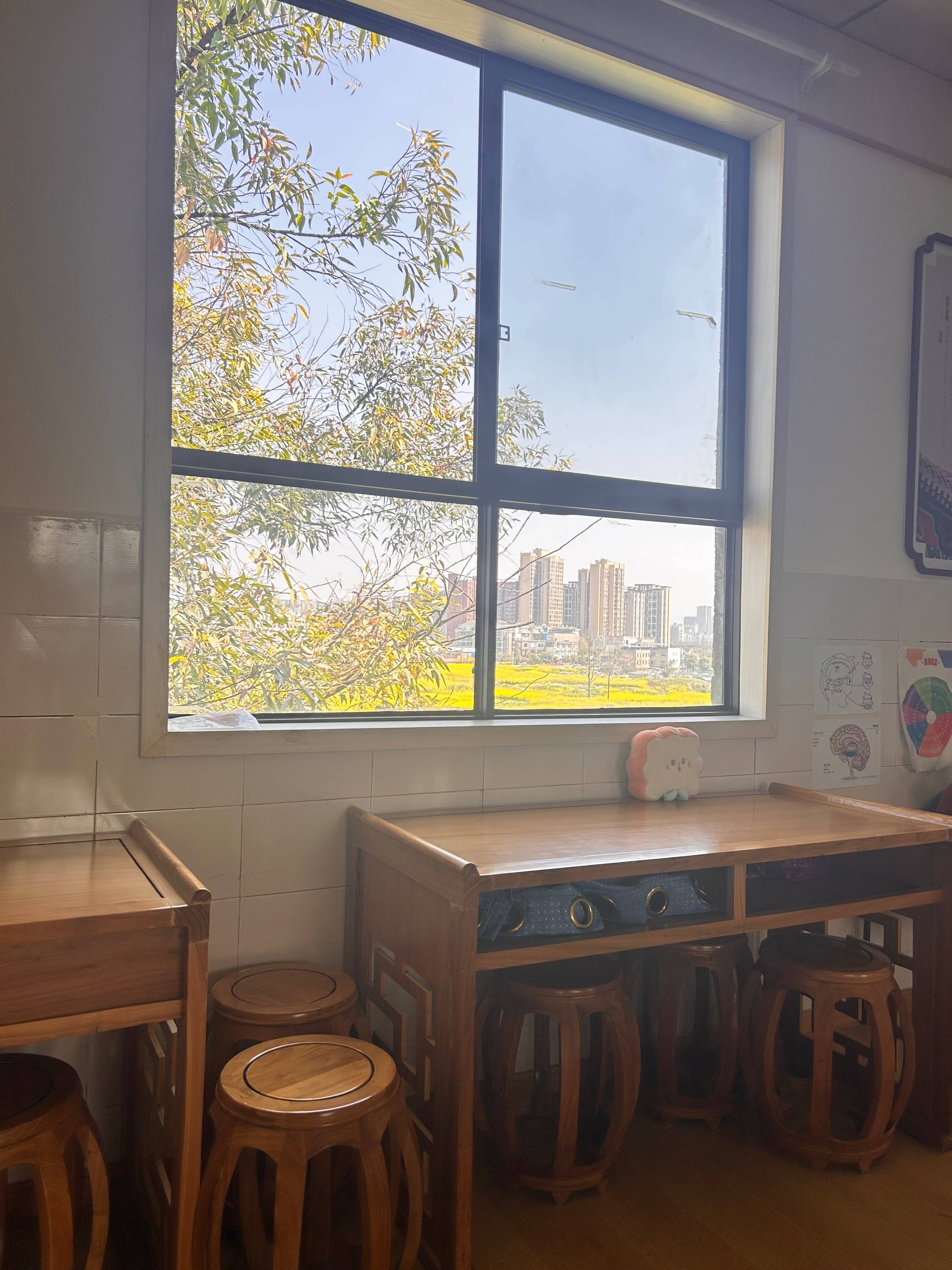 窗外待建设土地上的油菜花田,从一片鲜黄,慢慢褪成黄绿色了。思辰和碧瑶组装了用来放杯子花盆的阶梯状展架,也给植物们浇了浇水。我的那杯植物还没发芽,如果期末要把花盆带走的话,已经托孤给碧瑶了。