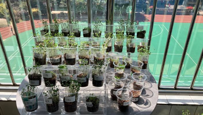 植树节种的盆栽完全开了(学生们的)