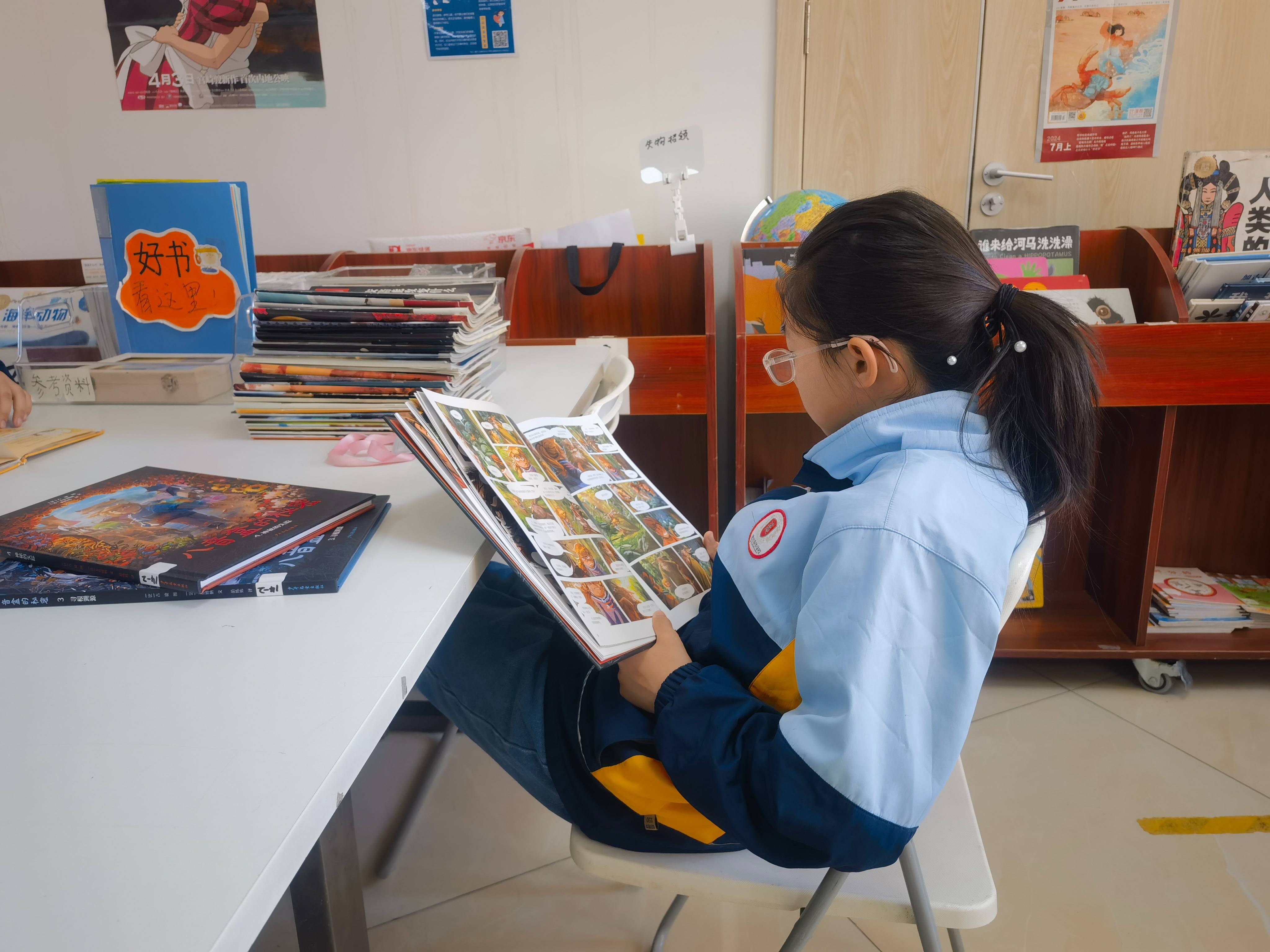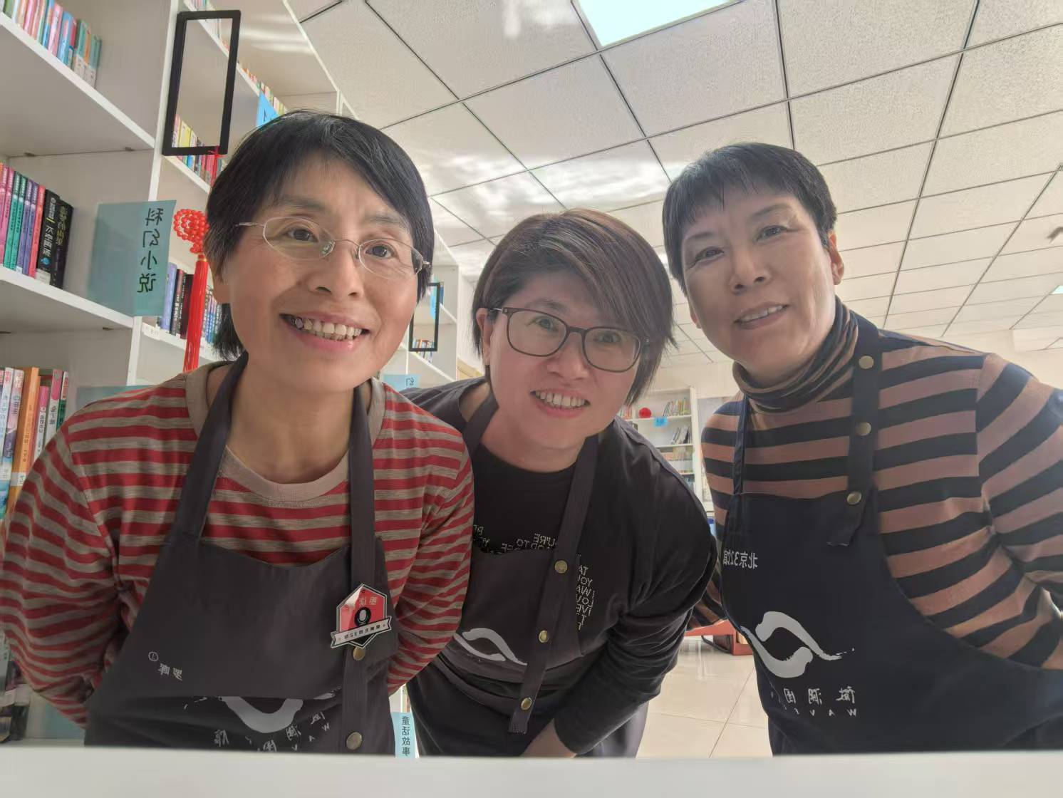 这里的志愿者老师们,每一个人都很友好,有人给馆里带来了好看的书签,有人带来了好吃的点心……借阅高峰过去后,大家也是都各自眼里有活儿,有人专注地整理书架上的书,有人修补破了的书,还有人拿起扫帚扫地。后来实在没活儿干了,我们就静静地看书或者小声交谈。