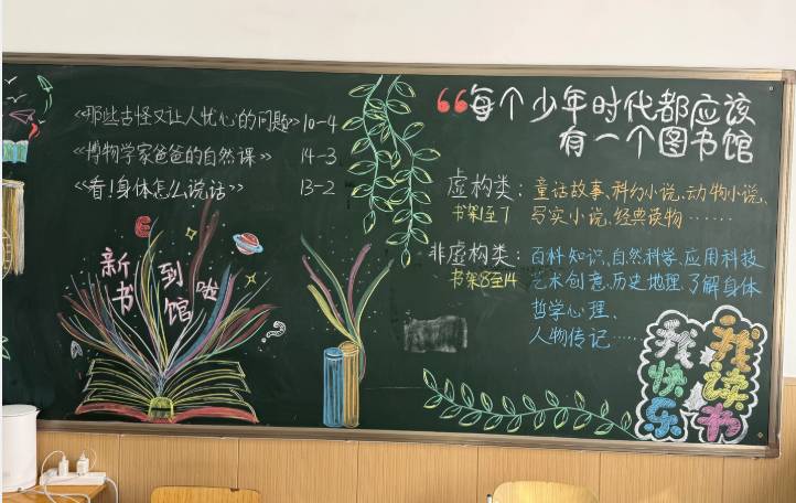 黑板画太好看了~新书光速借出,之后有新书或者推荐的潜水旧书都可以写在那里~