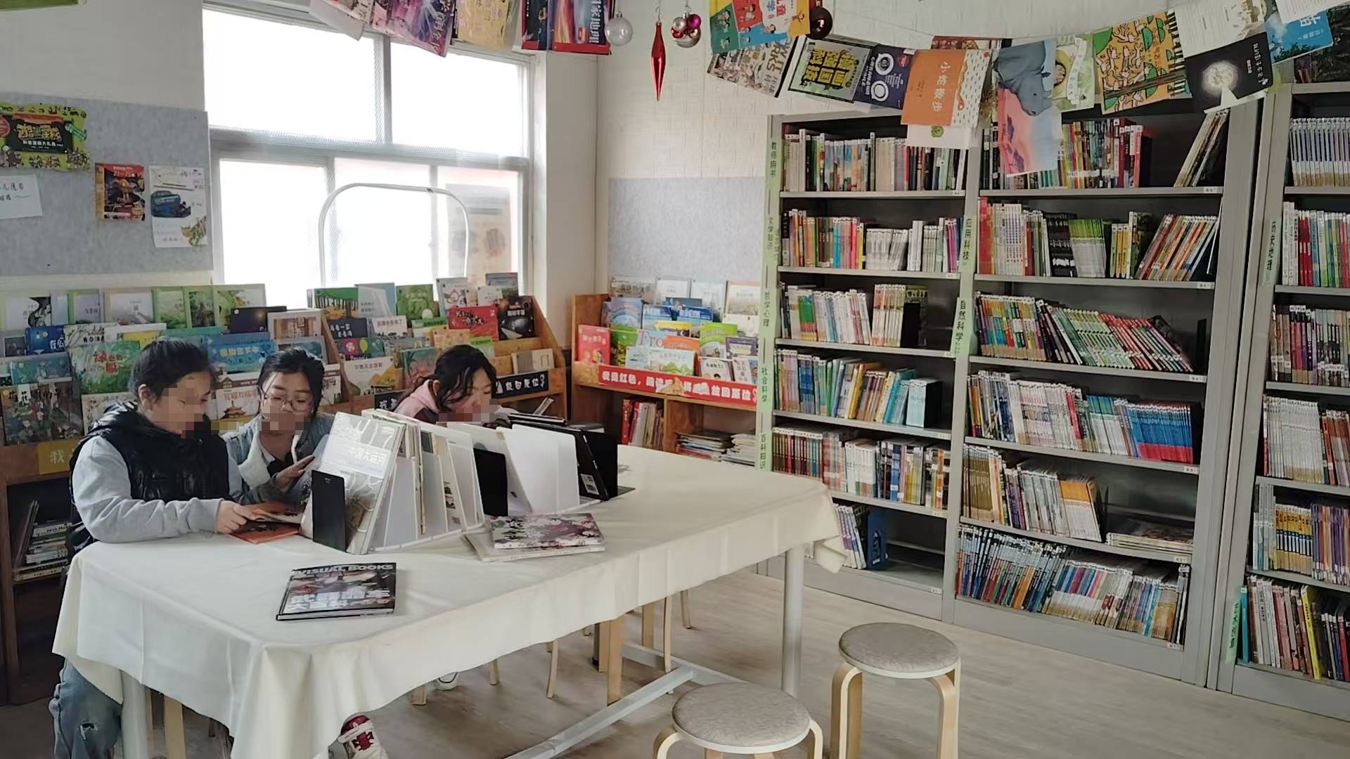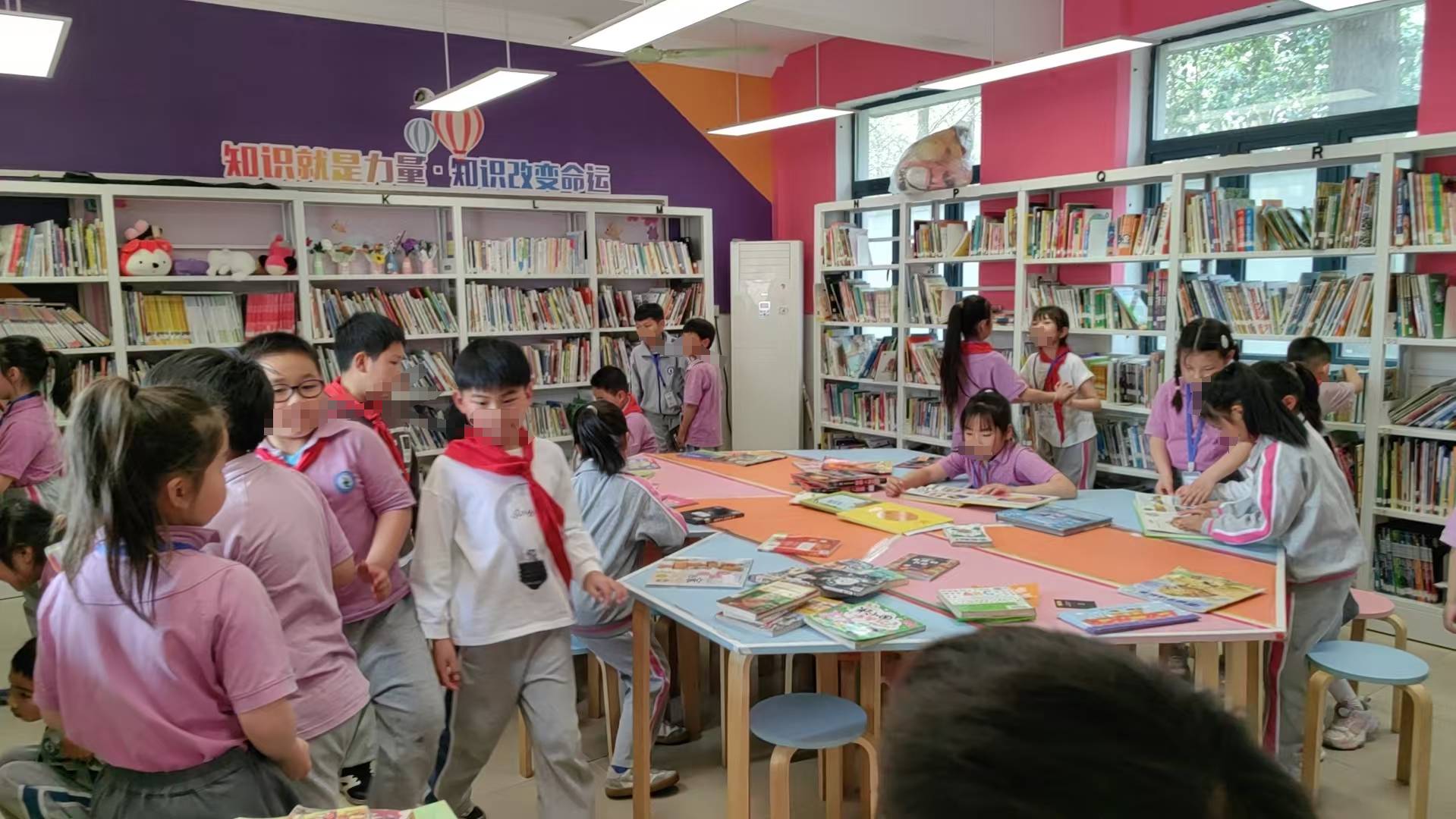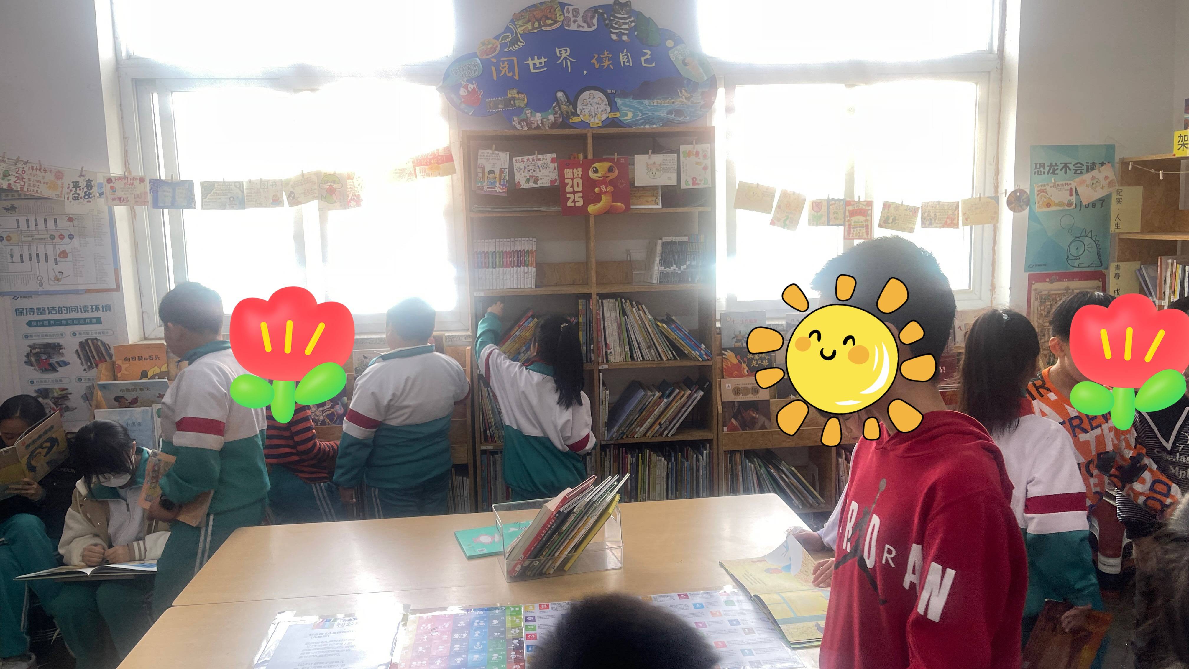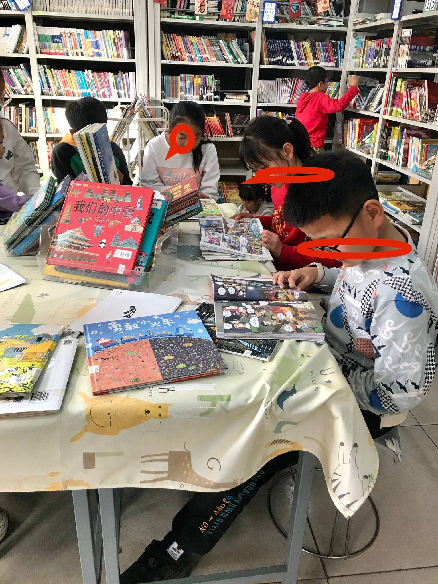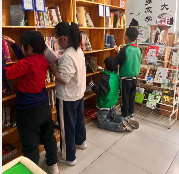 天气很好阳光灿烂,孩子们每周来已经认识部分同学名字了。那些经常到图书馆借书的小朋友能够熟练掌握到自己喜欢的书货架号,精准定位不必左顾右盼直接冲进来跪在地上拿出来就看。第一次来图书馆的小朋友有点不确定,保守的拿一本书到我面前扫,我说好啦可以啦,小朋友惊讶地问:“我可以拿走了吗?!”“是的呀!”小朋友如获至宝开心蹦跶走了。中午又遇到老师来借书,不知道是不是上次那名老师(脸盲人士根本记不住),她由衷地说:“你们图书馆的书品种真多,可选择面也很广!很好!”希望更多老师能踏进来借书,自己喜欢的或者给自己孩子借书也可以(下次碰到那个老师再宣传一下)。