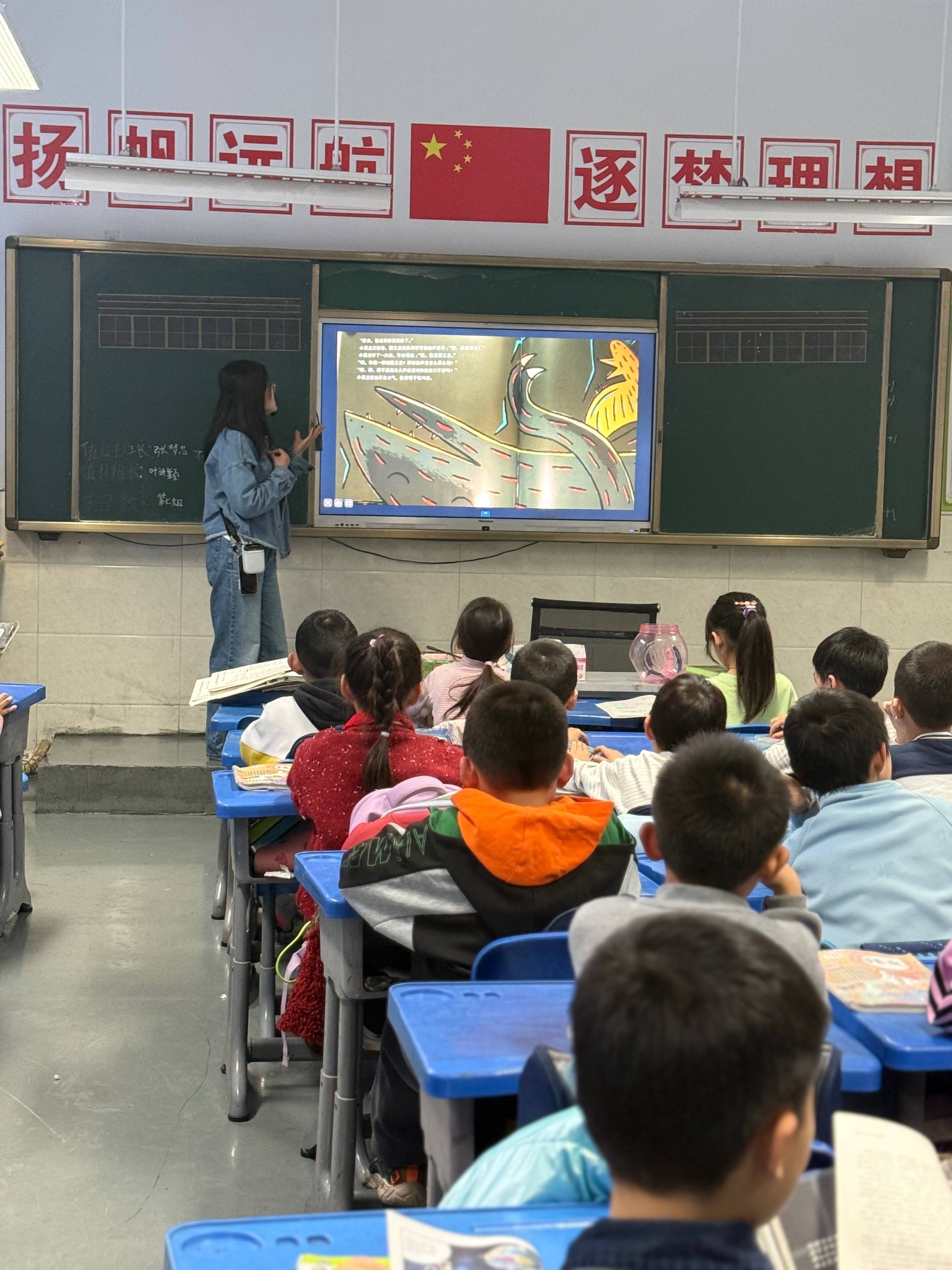 被委以重任去“纪律最有挑战”的二3班讲绘本。临时抱佛脚带了一本《捉小熊》。我的选书策略只有一个——字少。大概就是赶紧把一页的内容念完,然后让同学们看图说话,或者回答问题,任何突然想起来的问题。目前在二年级的三个班讲过绘本了,发现大家回答问题的积极性很高,啥都想分享,我就借机也维持一下秩序——谁能安静举手就选谁回答。这招目前的漏洞在于,二3班有两个男同学完全不在乎这些规则,想跑就跑,想回答问题就冲到我跟前,他俩还坐在教室靠窗的一头一尾。我猜想到为什么ZCY要转去二1班了。他在的话,可能真的就更乱套了。还好有萌萌和郑颜在协助维持秩序。