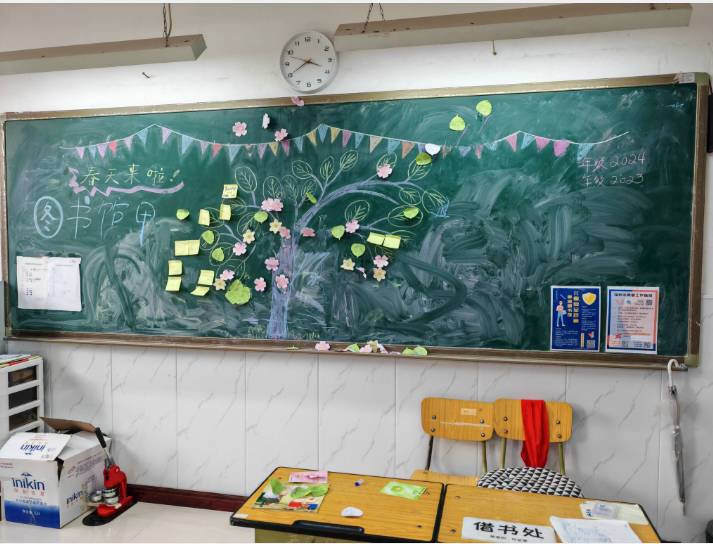 我给孩子们介绍活动要求,并鼓励他们参加。很多孩子非常积极,一会儿大树上就多了许多樱花和绿叶,教室里也充满了春天的气息!