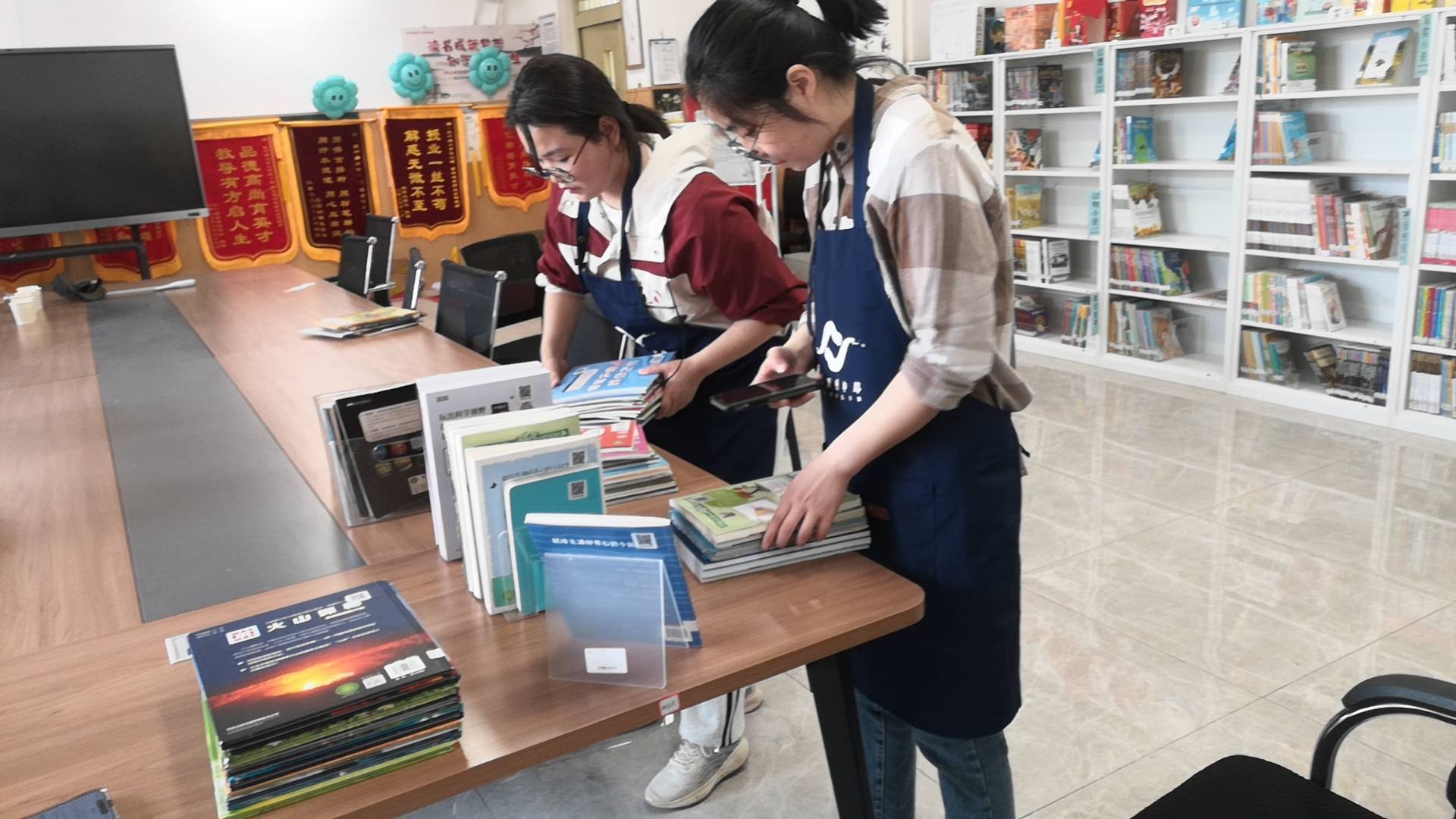 今天4馆盘点整备,提前和工大负责人联系过,让他帮忙组织六位同学到4馆做志愿;下午六位同学提前到馆,链接通过,按我给大家说的方式,立马扫码盘点,我顺便打扫书架的灰尘,整理书架,有两个小时左右所有图书盘点结束,大家还有课要上就回校了;接着,我和毅桦老师对接缺少图书的情况,按毅桦老师发的链接我对准书架号进行核准,有些漏扫的我重新纳入盘点,不过这样盘点心里更踏实,也是微澜公益做到精准,期待4早日开馆!