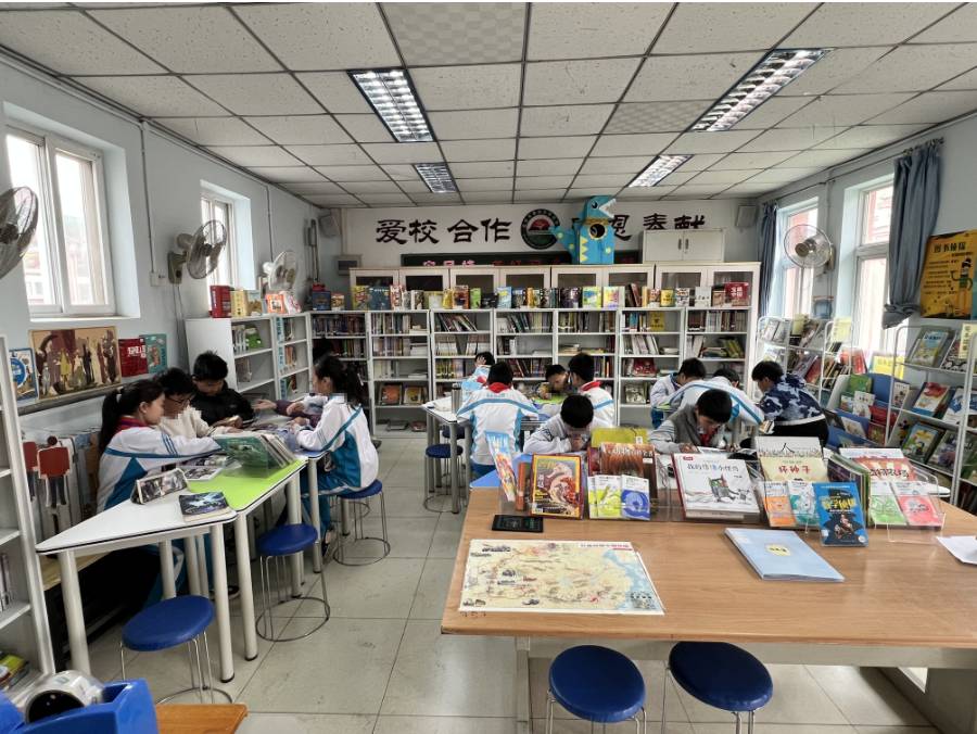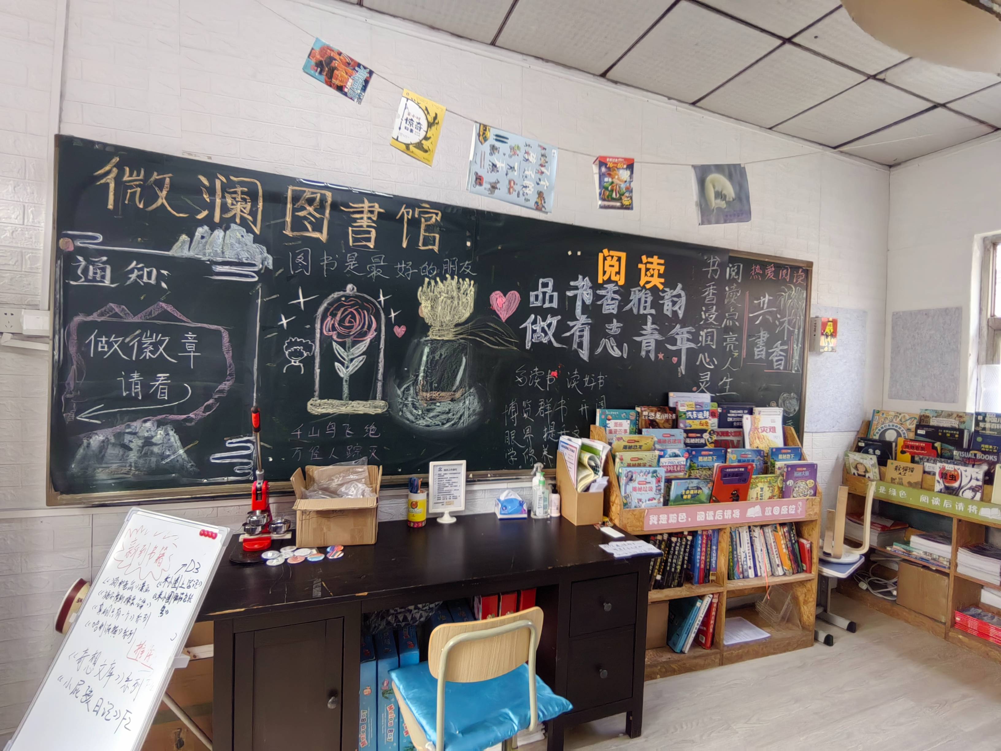 上午丸子老师早早在馆里,整齐的摆放好各个书架,等待同学们来借阅。