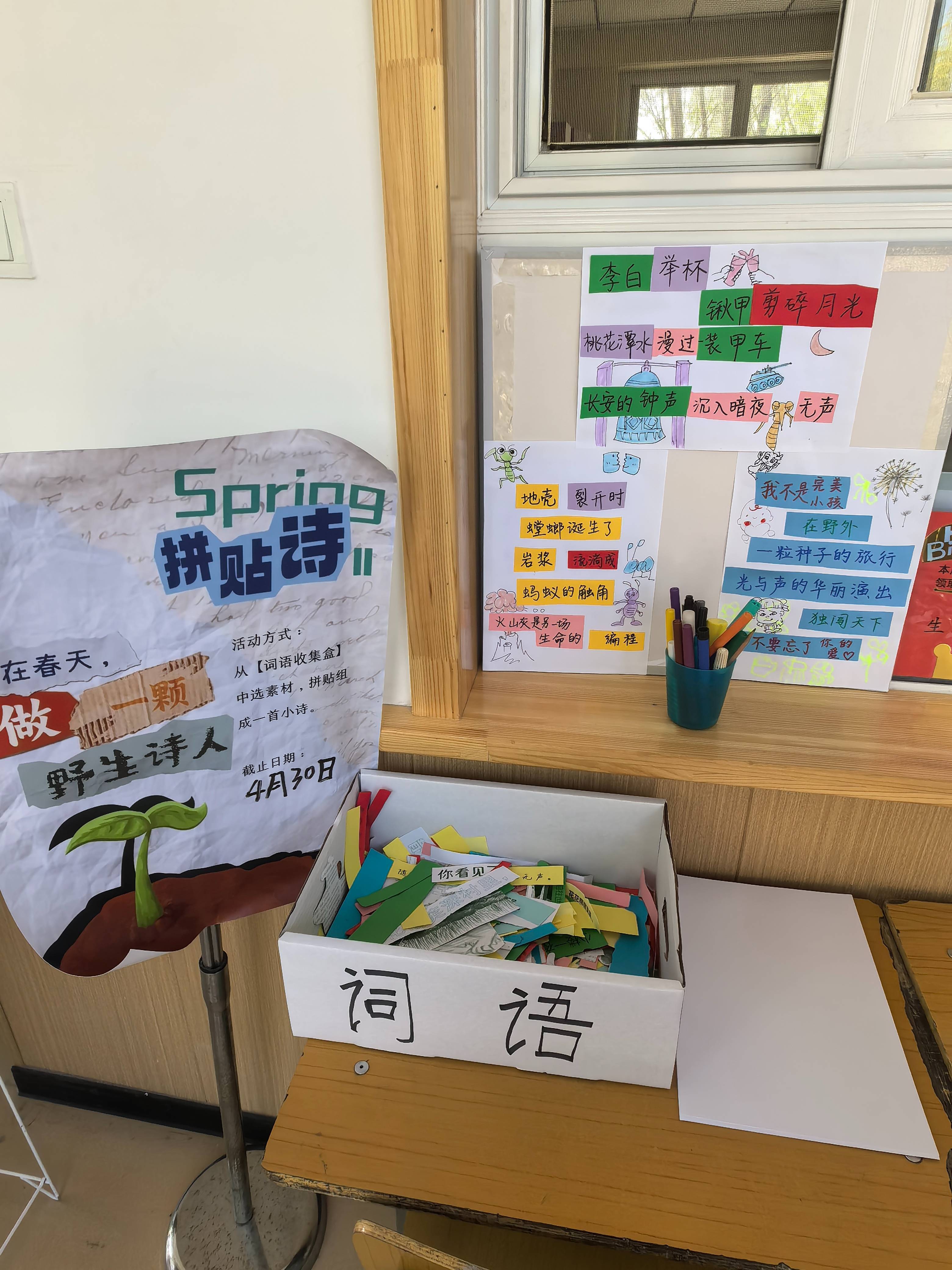 借还书很有序,陆续有同学来交任务盖章,也有同学很好奇不知道怎么参加活动,一一解释了拼贴诗和春天密码活动的规则,个个跃跃欲试。