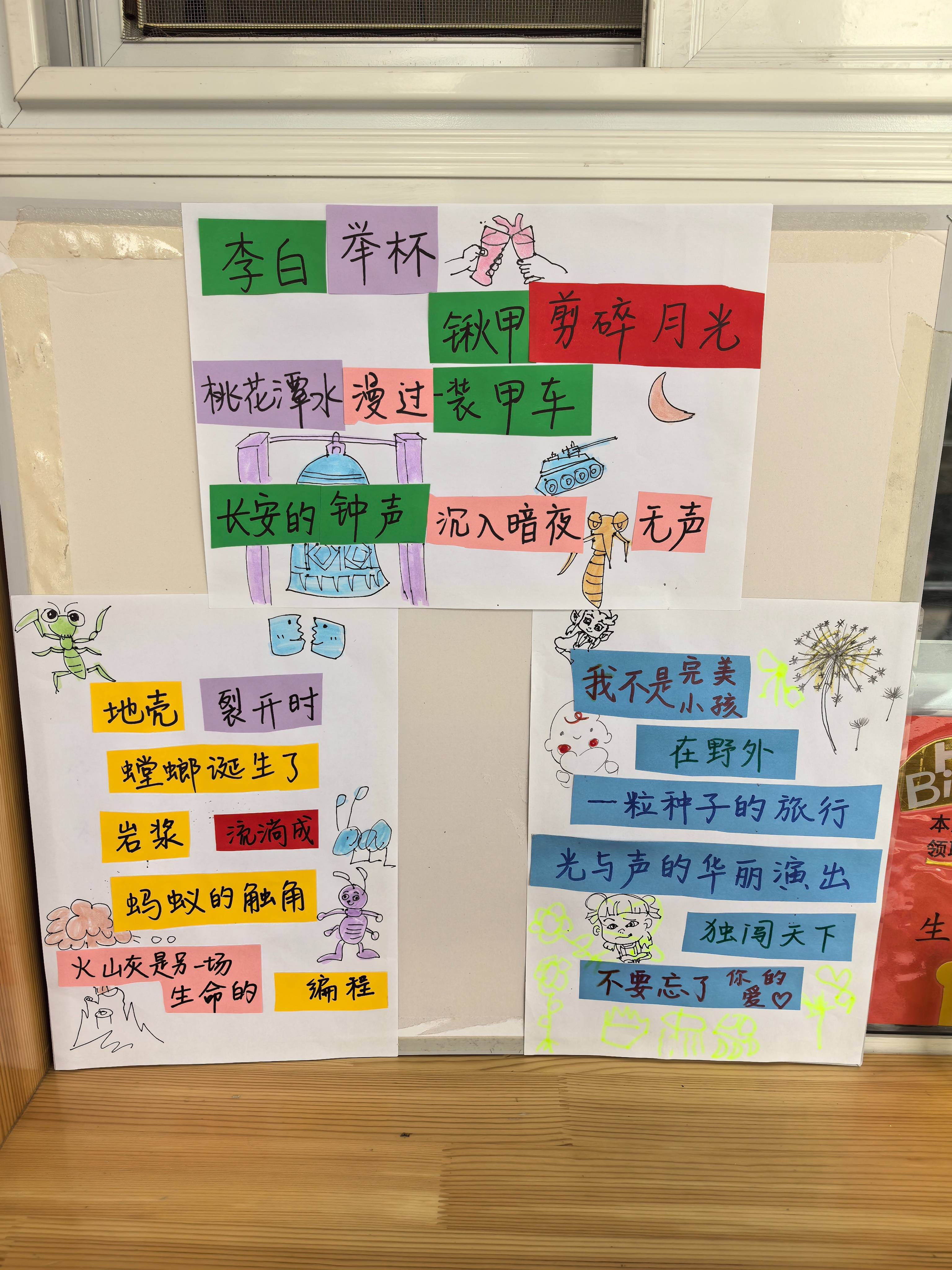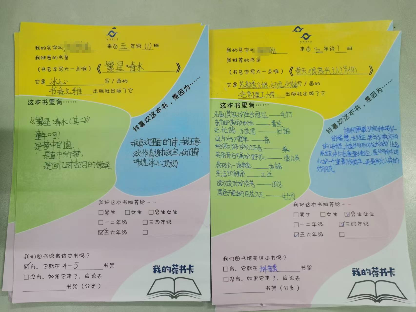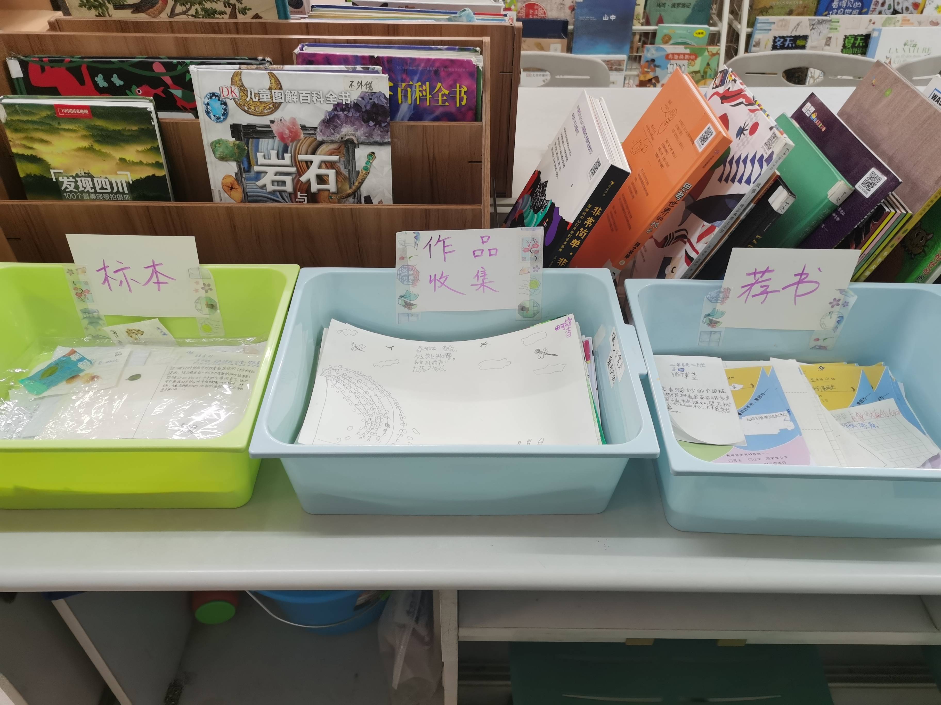 1.活动继续开展中,陆续收到集章作品,已提醒写明班级姓名,并对应该章,收集到了文件袋里。为了更好的开展,每个课间都会给来馆的同学同步一下活动,并一次性提供了3张小白卡纸(科普卡片+书籍推荐)和1张大纸(诗配画),隔壁教学楼有两位同学也闻讯而来,给了材料。希望看到她们的作品。下午也带着材料去二1班又发了几份,并陆续盖了几个章。