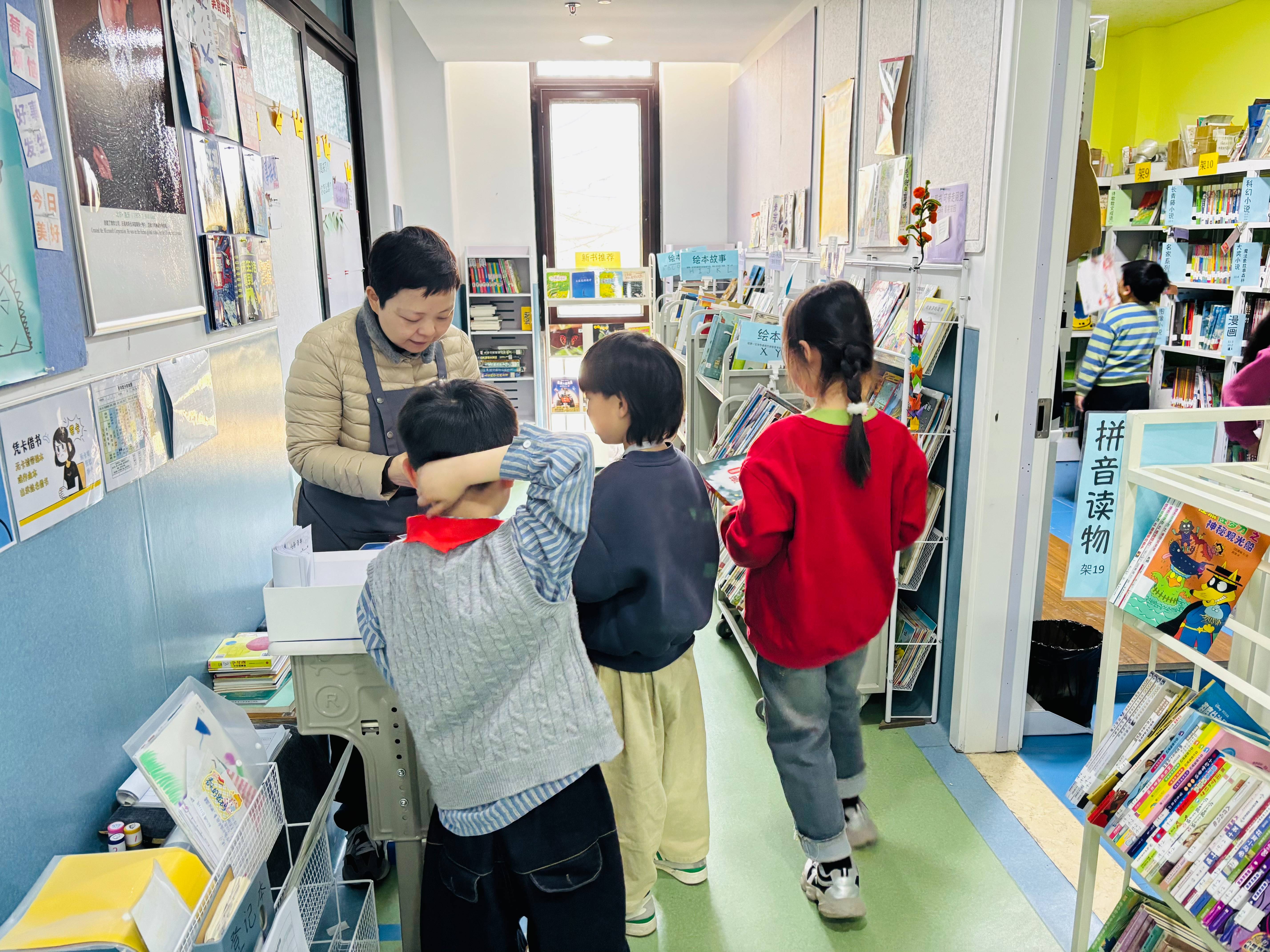 丸子老师也是去了二1班,精心挑选了绘本,给孩子们讲了《狗侦探米哈蒙》,也推荐了桥梁书。带去的书都被借走了。我也是往返图书馆2次,给孩子们盖章,补充集章的材料。后来直接把章带在了身上,边收集,边盖章,边给同学们讲解活动,鼓励参与。