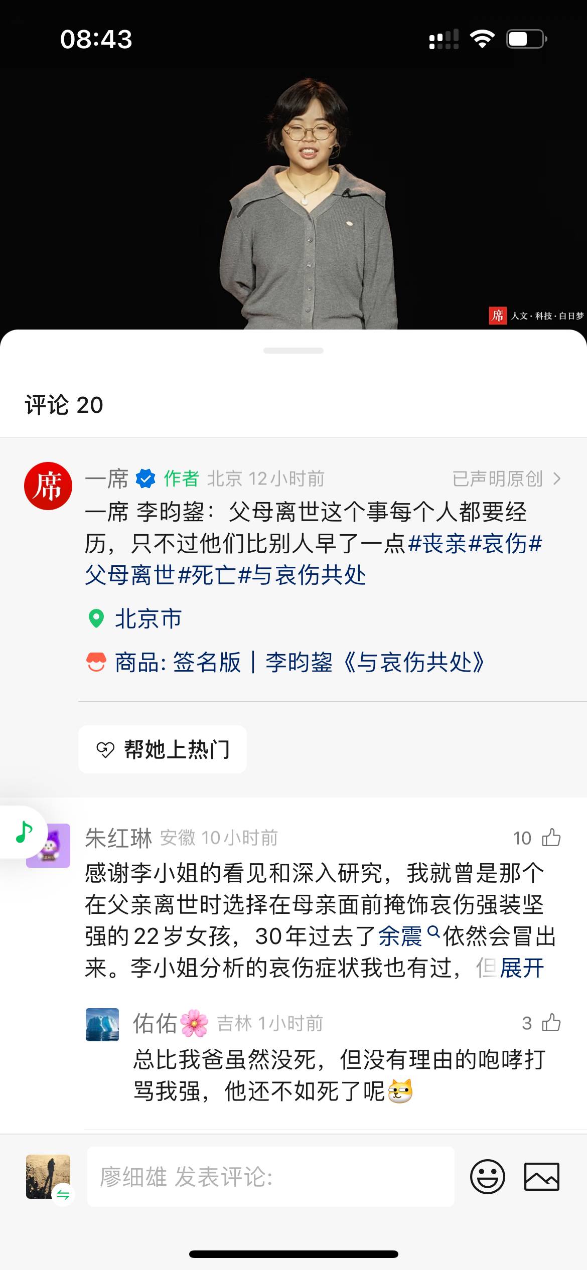 演讲者李昀鋆图书:《与哀伤共处:经历父母离世的年轻子女》