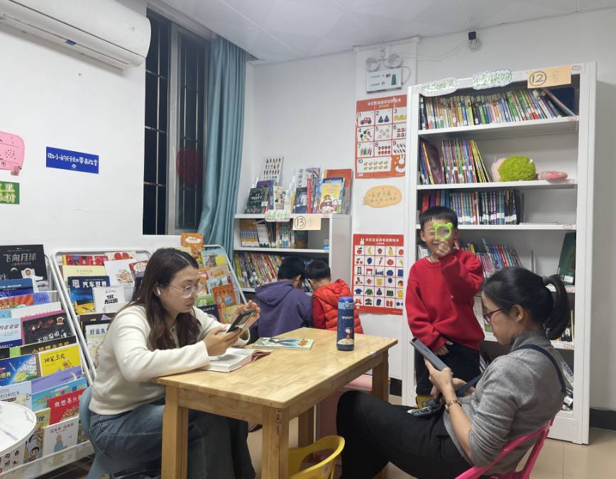 很快,Jz和wl来,也有其他孩子来,(三个男孩玩扑克牌,以前都在物业大厅大厅玩,风大太冷就来了图书馆,后来被劝退了)