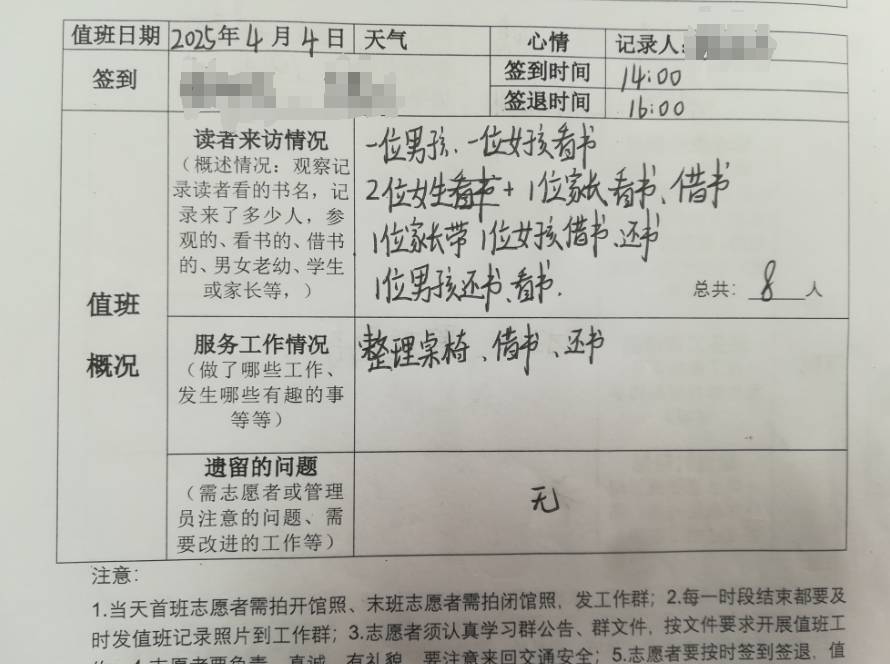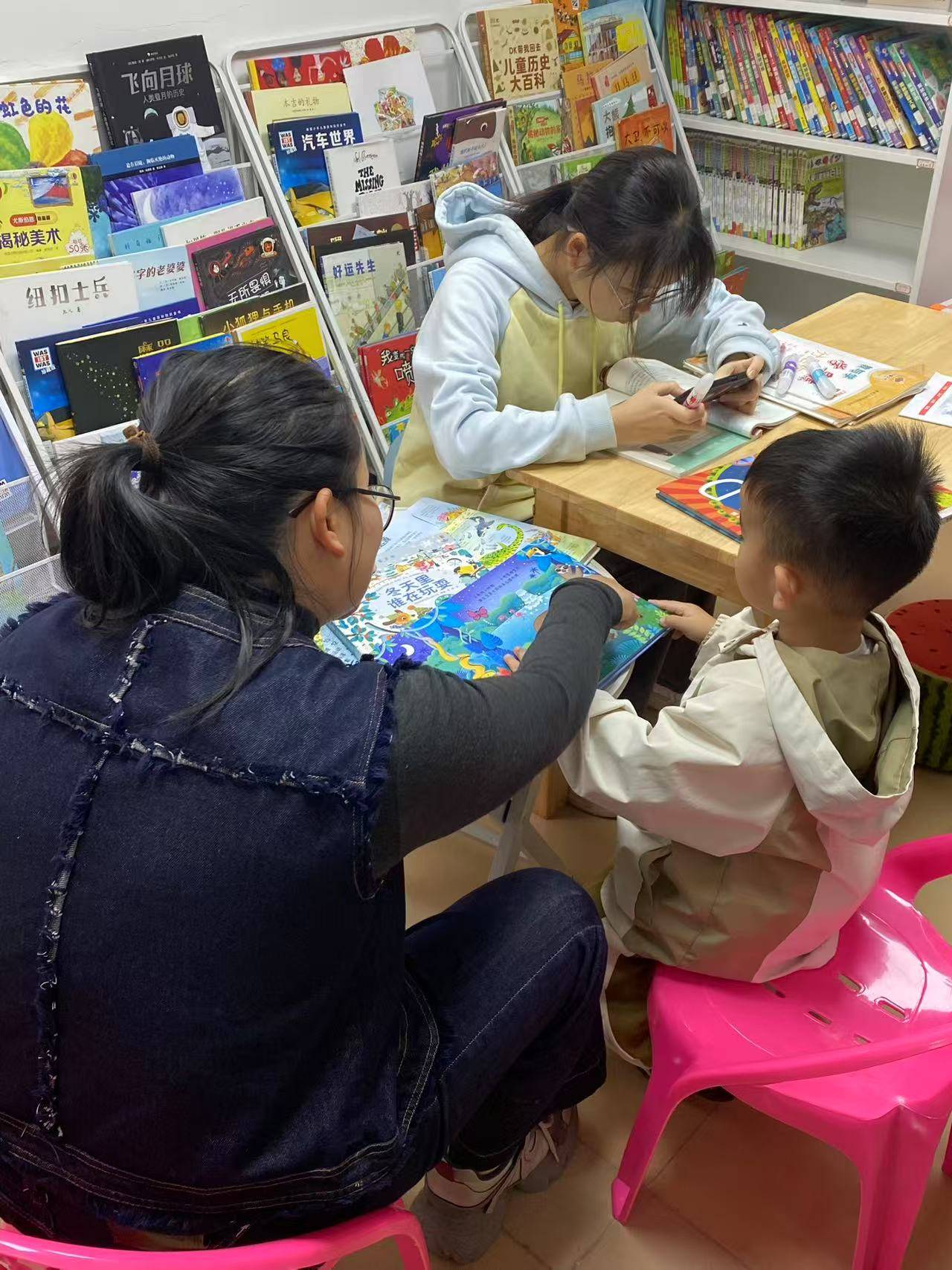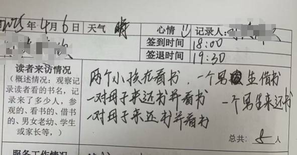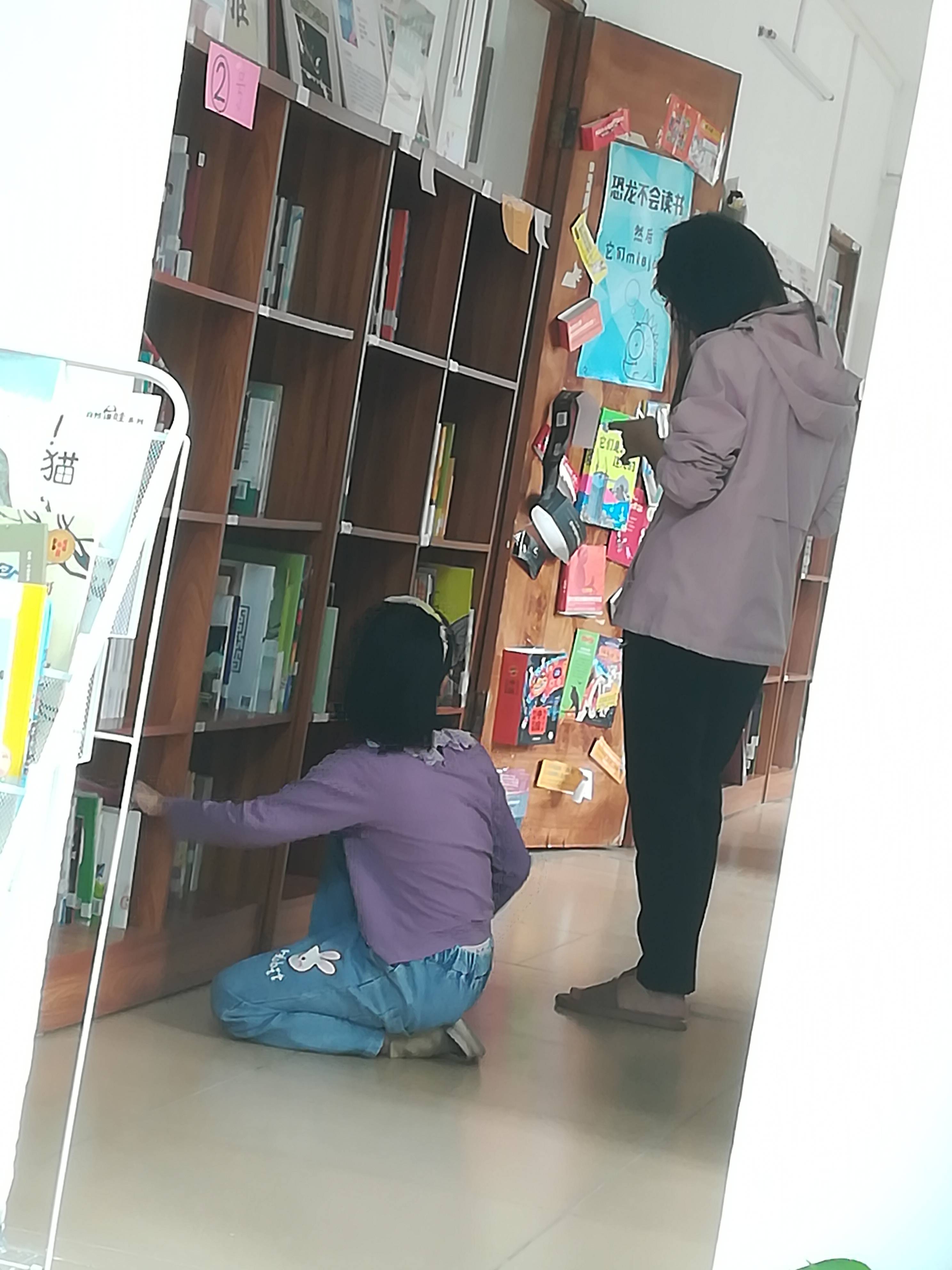 晚一点她也回去吃饭。我也外卖快速吃完,晚一点人又多起来,热闹。zjy进来了,她说好多次来都没开馆,又告诉她要记住时间。说丢失的书找到了,晚一点爸爸来找她,就拜托把书送回来,正好周老师也来了,帮忙做得归还,超期700多天,书还很新,应该做过清洁了,之前时掉在床下。在馆的时候应该也和其他孩子发生了小小的冲突,可能是觉得小朋友们说话吵闹打扰她了,不过没有看到也没有介入。谢谢周老师处理了。
