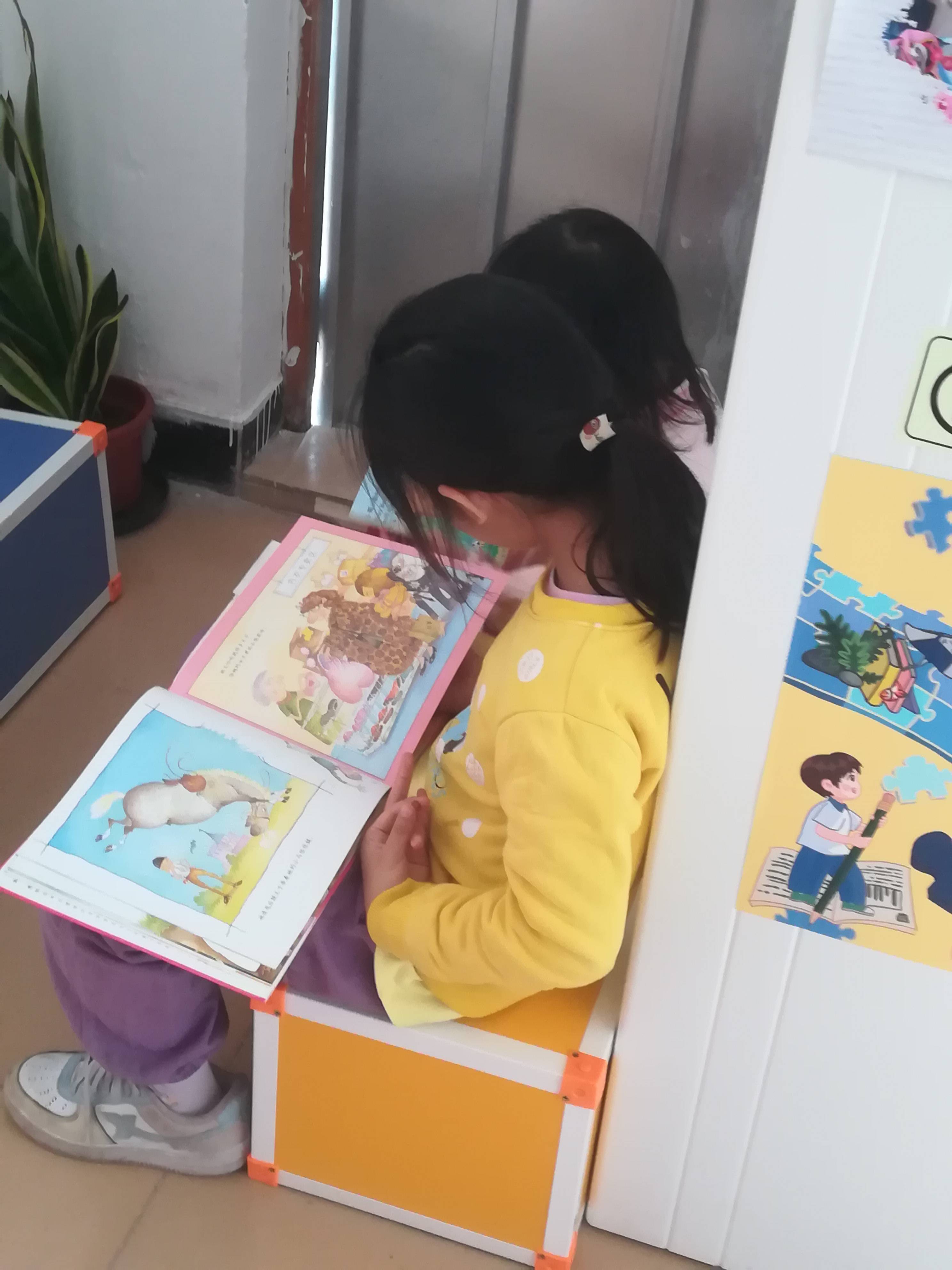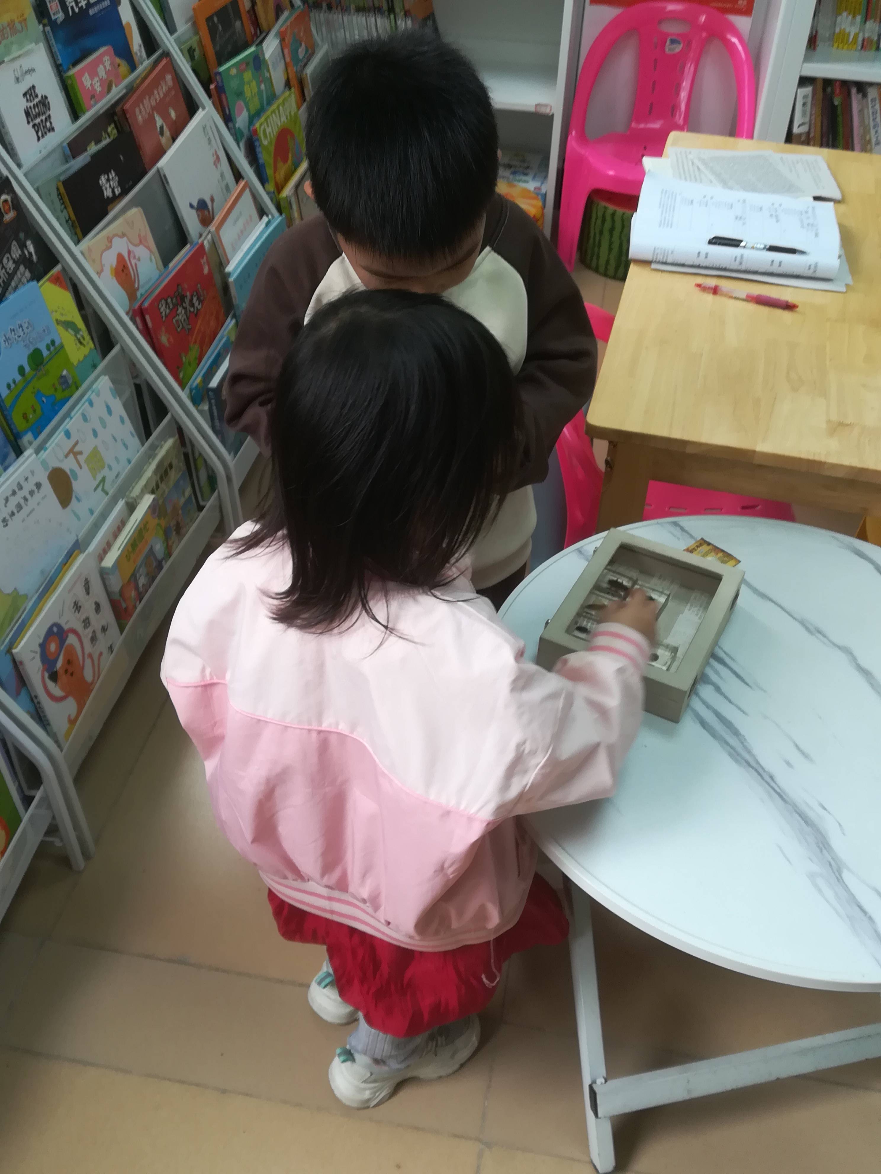 ysj来,rxt和mm来,我们讨论书,mm自己一个人拼拼图,拼完,好朋友都不在,低沉委屈。不过很快yy和周老师来,有笑逐颜开了。