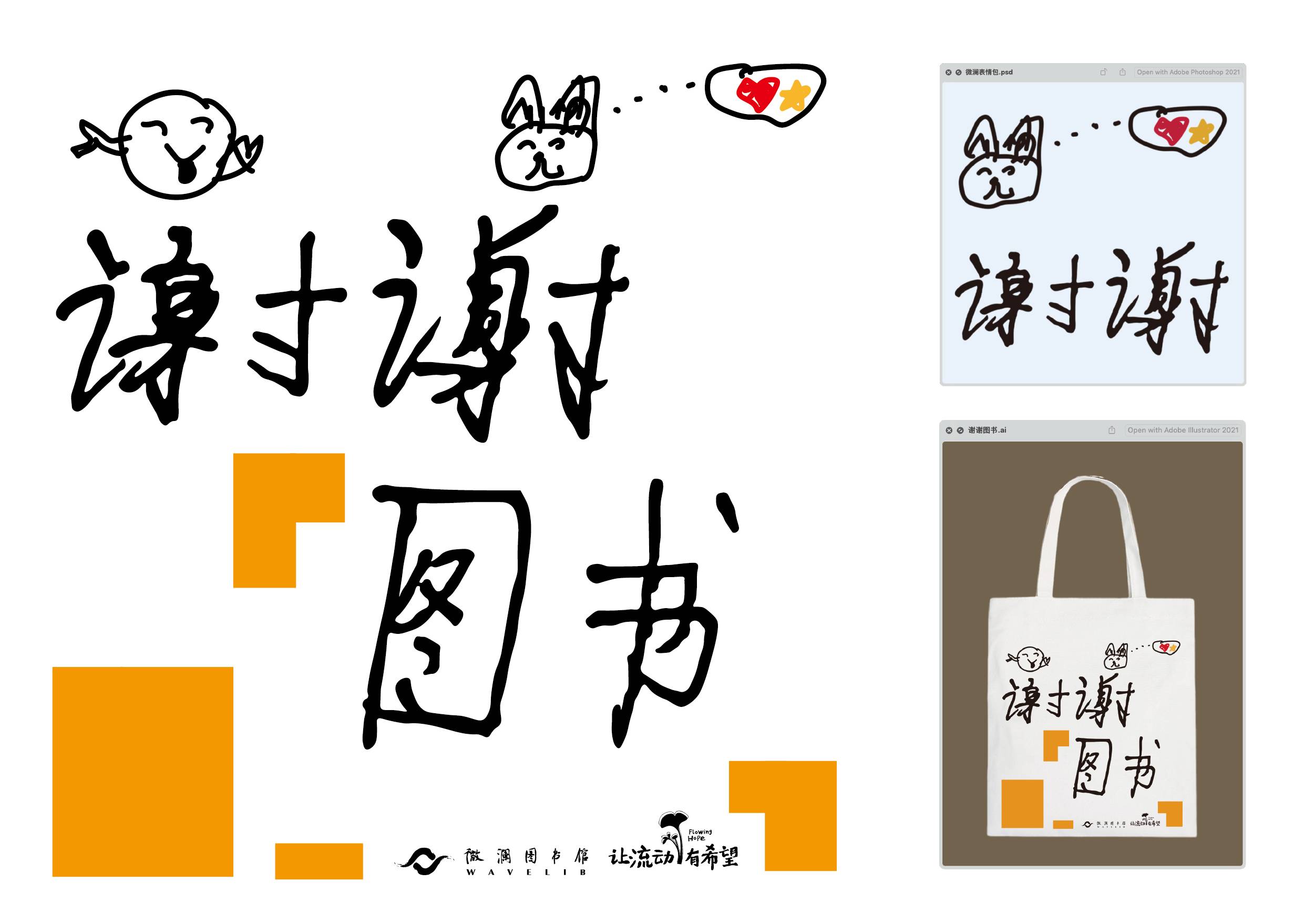 悟空教育的联络人想要和图书馆联名做一个帆布包,发给他们的内部员工。他们好像给成都1馆捐了六千块左右的书。改了成都2馆的ZMT同学给图书馆写的第一条留言,做了点矢量素材排了排版。对方说画风和他们的IP搭配起来有些违和。感受到对方的决策链路还包括领导、设计师。我说我把素材发给你们自己调整也行。(把对方的相关素材用色块遮了遮。)退出工作流程。顺便改了个“谢谢”的表情包。顺便改了“可以哭”手帕的底色,增加了一个深灰色、一个深黄色。