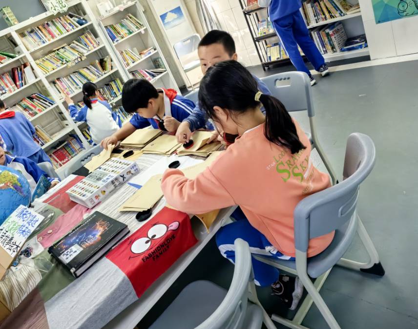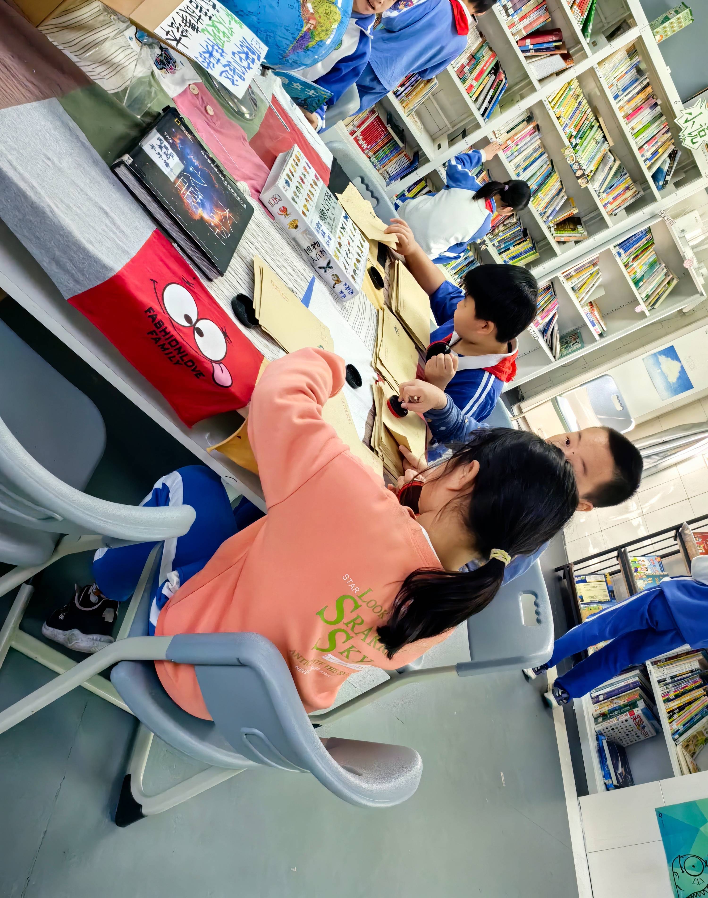 今天我们先后邀请了近十位小读者帮忙,袁ZH、李C、陈QW像往常一样辅助借还书补卡维持秩序,李XY帮忙整理书架,刘WT很关心答卷的奖品,和两位同学一起帮忙微澜LOGO章,中午有三位四年级女生向老师请假不午休,来帮忙装信封,谈笑风生,给我们带来很多欢乐,感受到像一馆午间的气氛。
