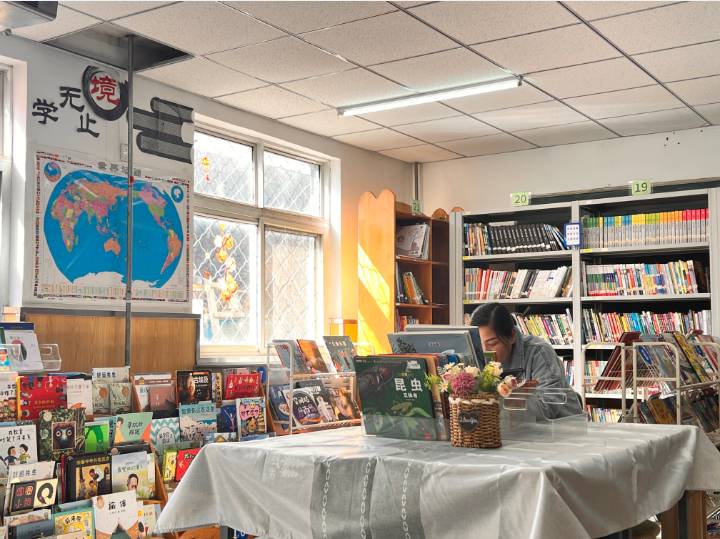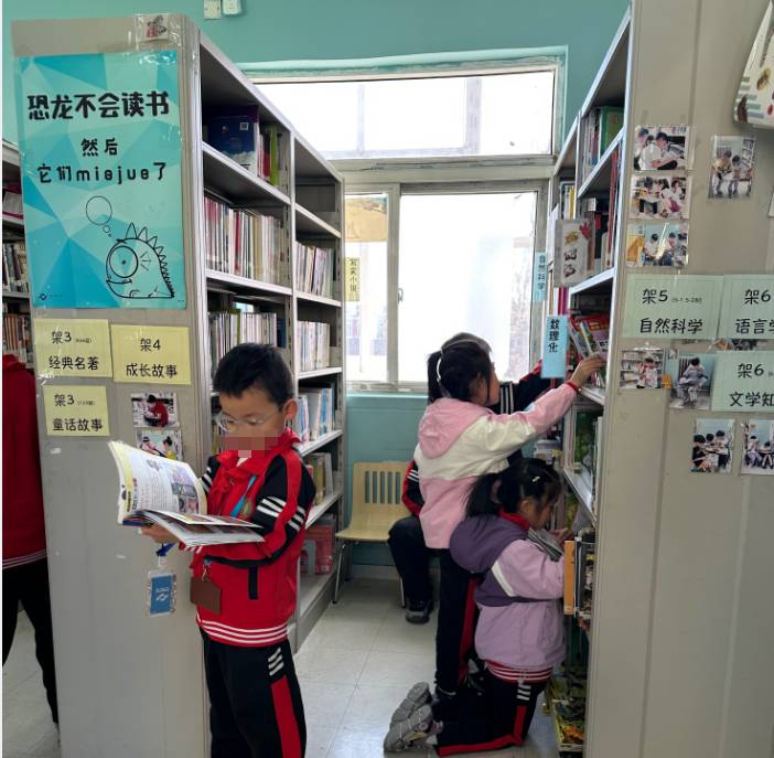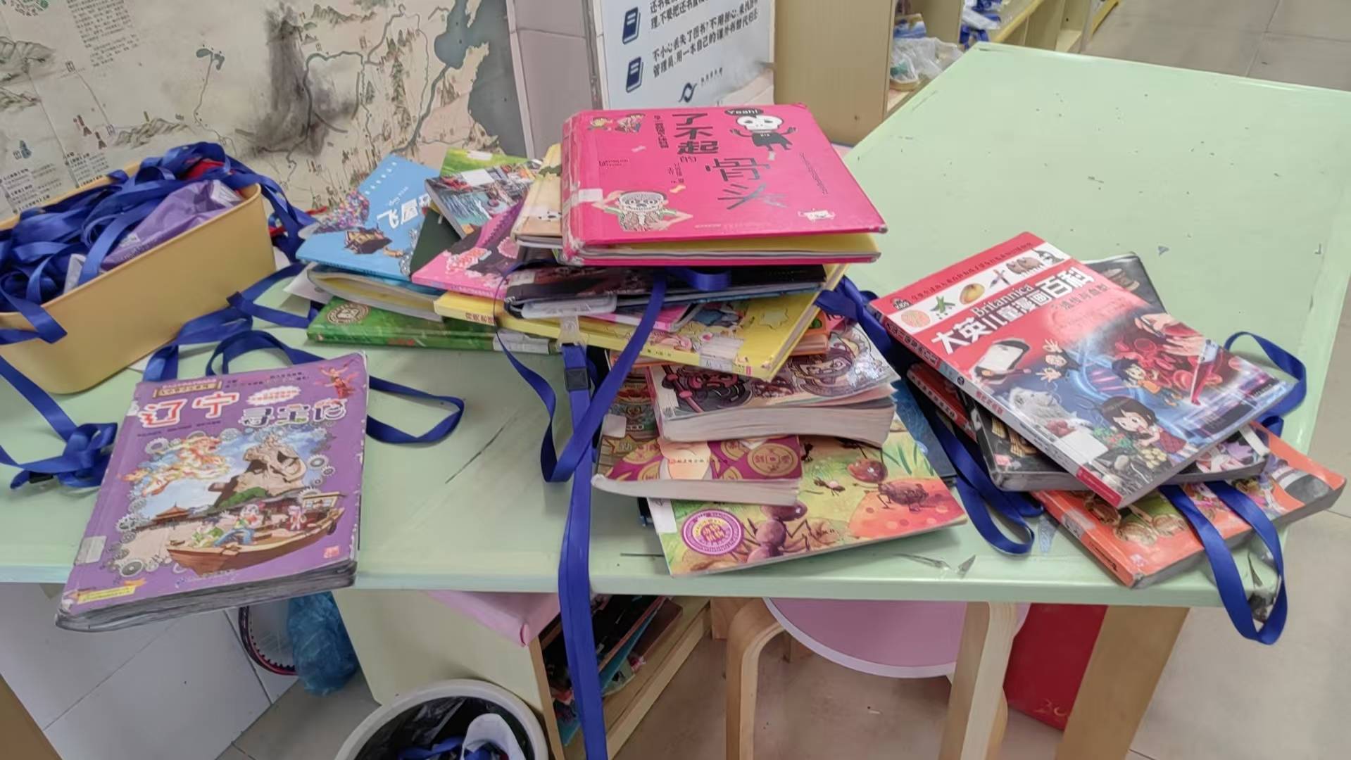 4. 下午压力很小,孩子们上课时,我和宋老师整理书架,修补图书,宋老师还把馆内擦了一遍。