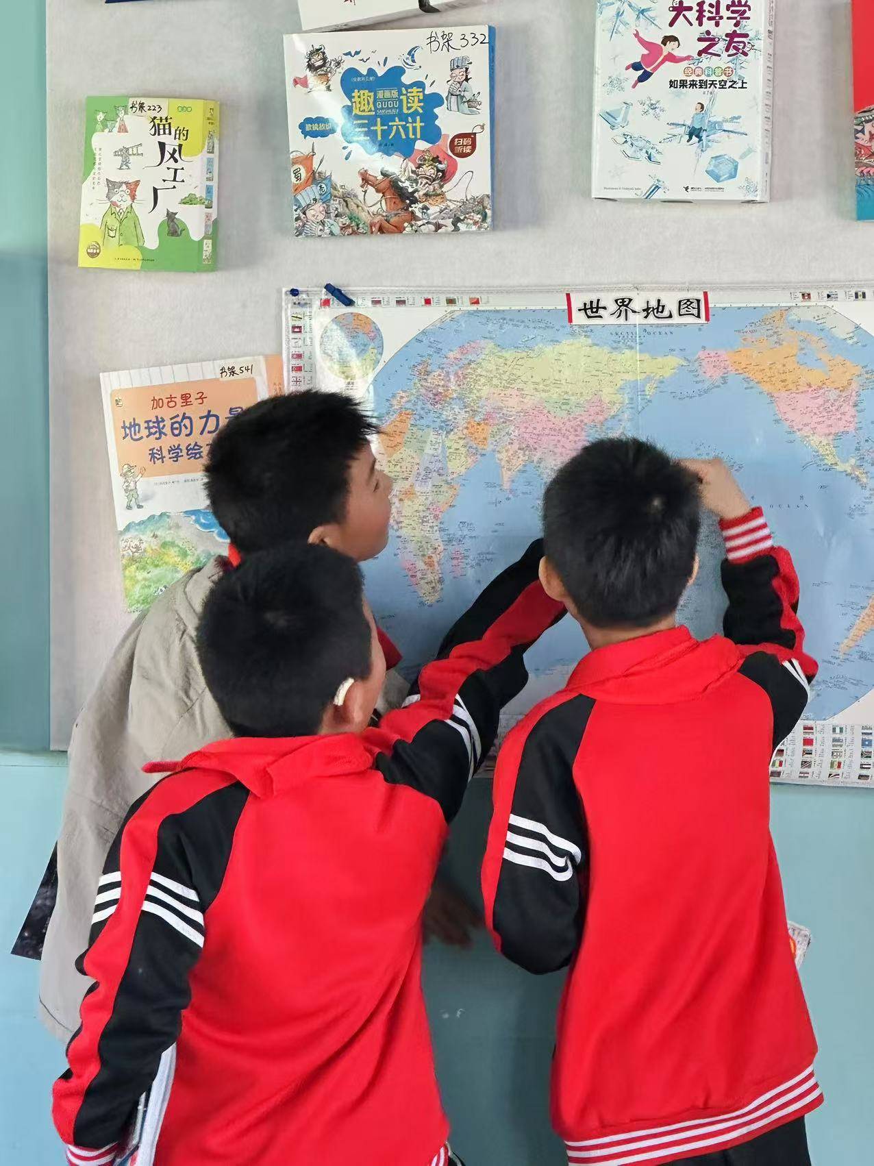 还给围在桌前小朋友简单介绍了一下地球仪上的国家,他们老开心了。