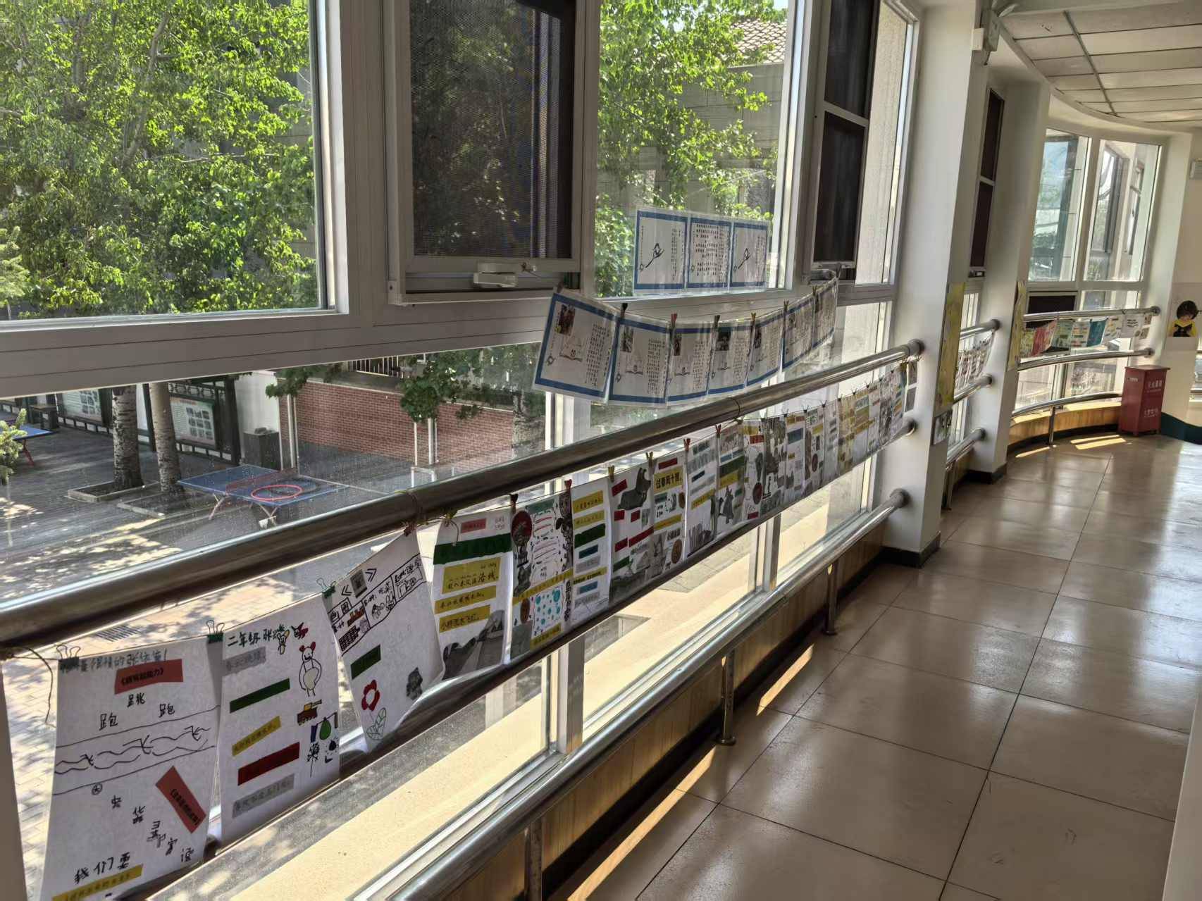 上午一到馆,LB就和我一起把收到的60多张拼贴诗作品都悬挂在了阅读走廊上。看着阳光下挂满一走廊的花花绿绿、充满童真的拼贴诗,忽然觉得幸福的样子大抵就是如此吧。