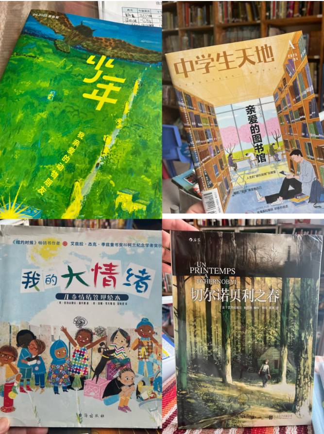 《我的大情绪》(廊1复本转调)《亲爱的图书馆》(细雄带来)《新知少年202504》(本馆购买)《切尔诺贝利之春》(心愿)四本书;