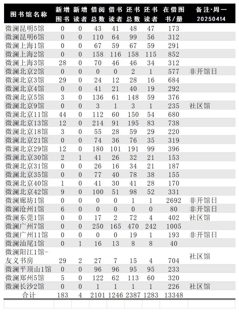 各馆数据日报20250414·周一: