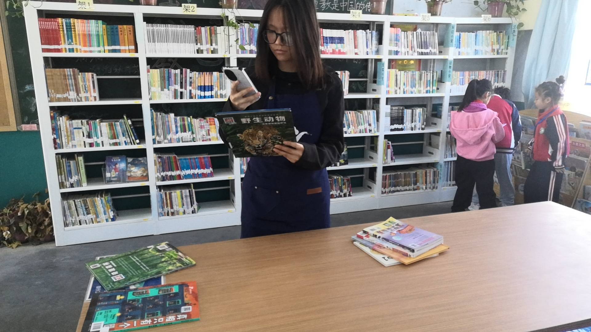 小朋友们借还书。
