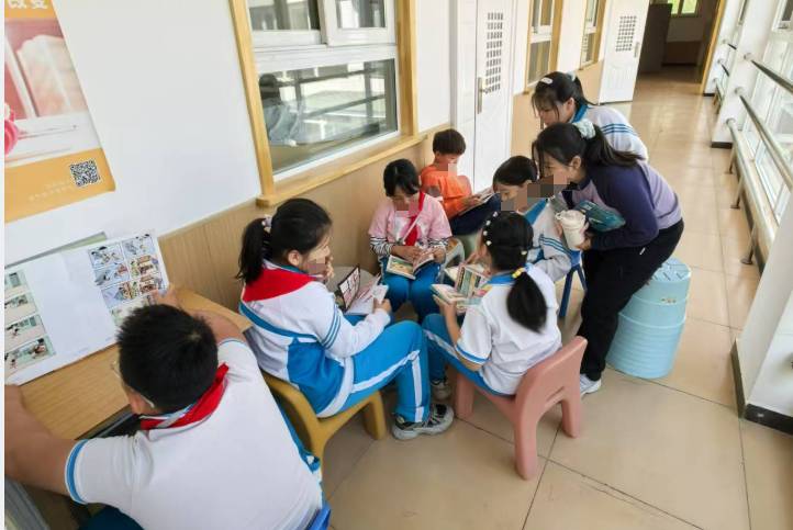 上午三年级的同学来馆里阅读,补办了部分同学的借阅卡。
