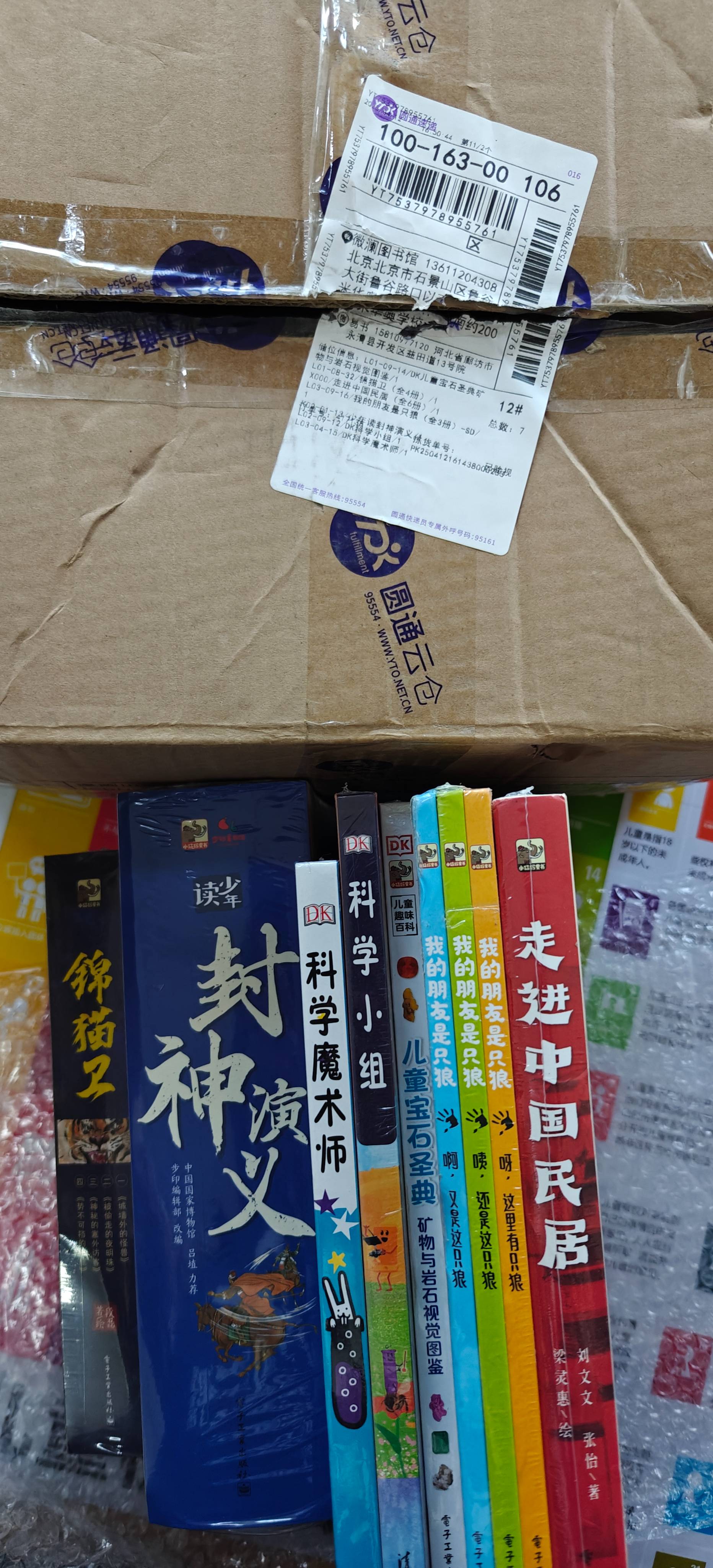 今天超级忙碌,大风没出操,孩子们也异常活跃,除了日常,到了一批推荐书单,我们把馆里有的书目挑出来(约占总书目1/4)写推荐语,还没写到一半,来了好几批快递,大量书到了,我们整理好,上架了一小部分,剩下的大家慢慢上