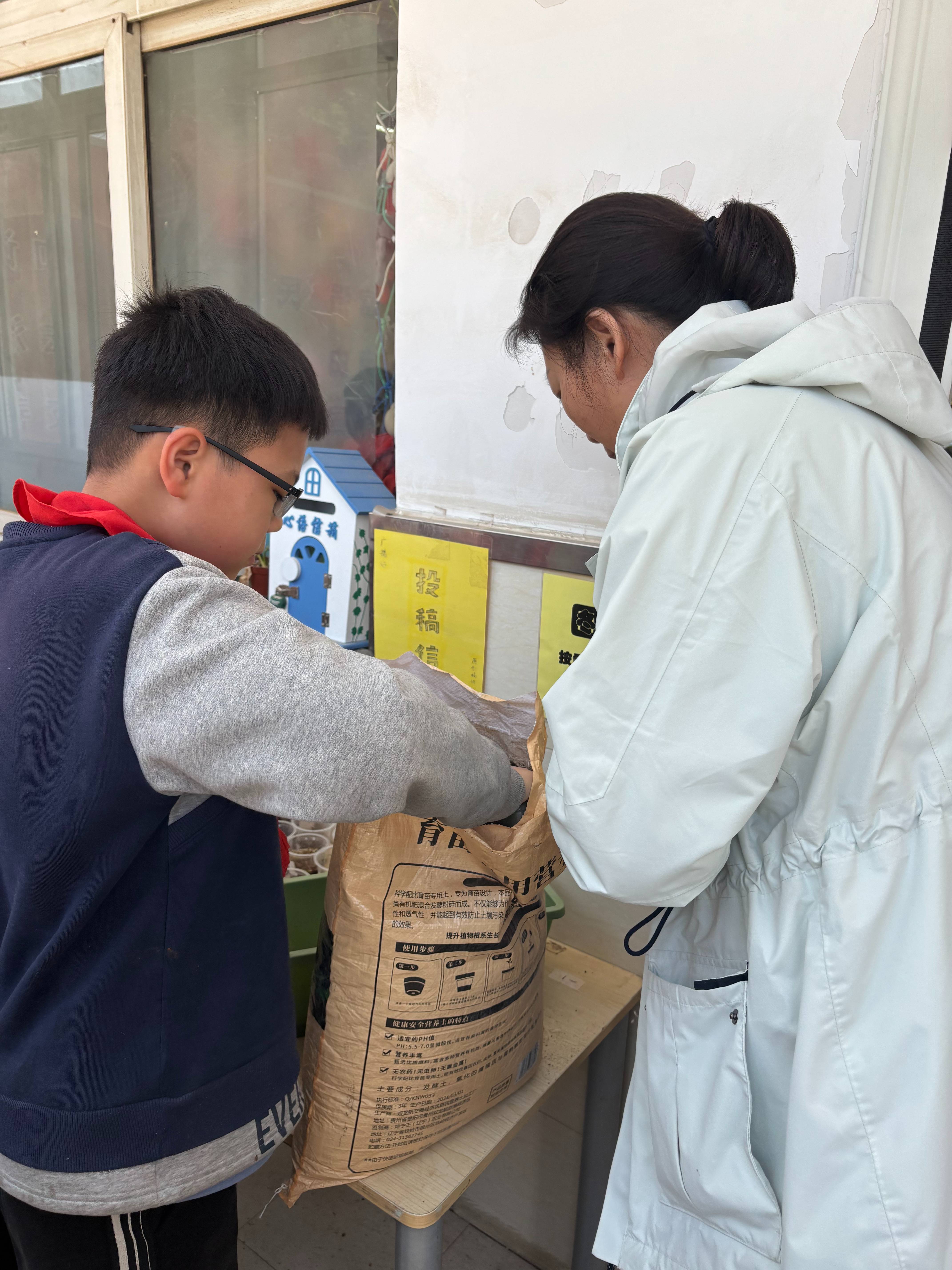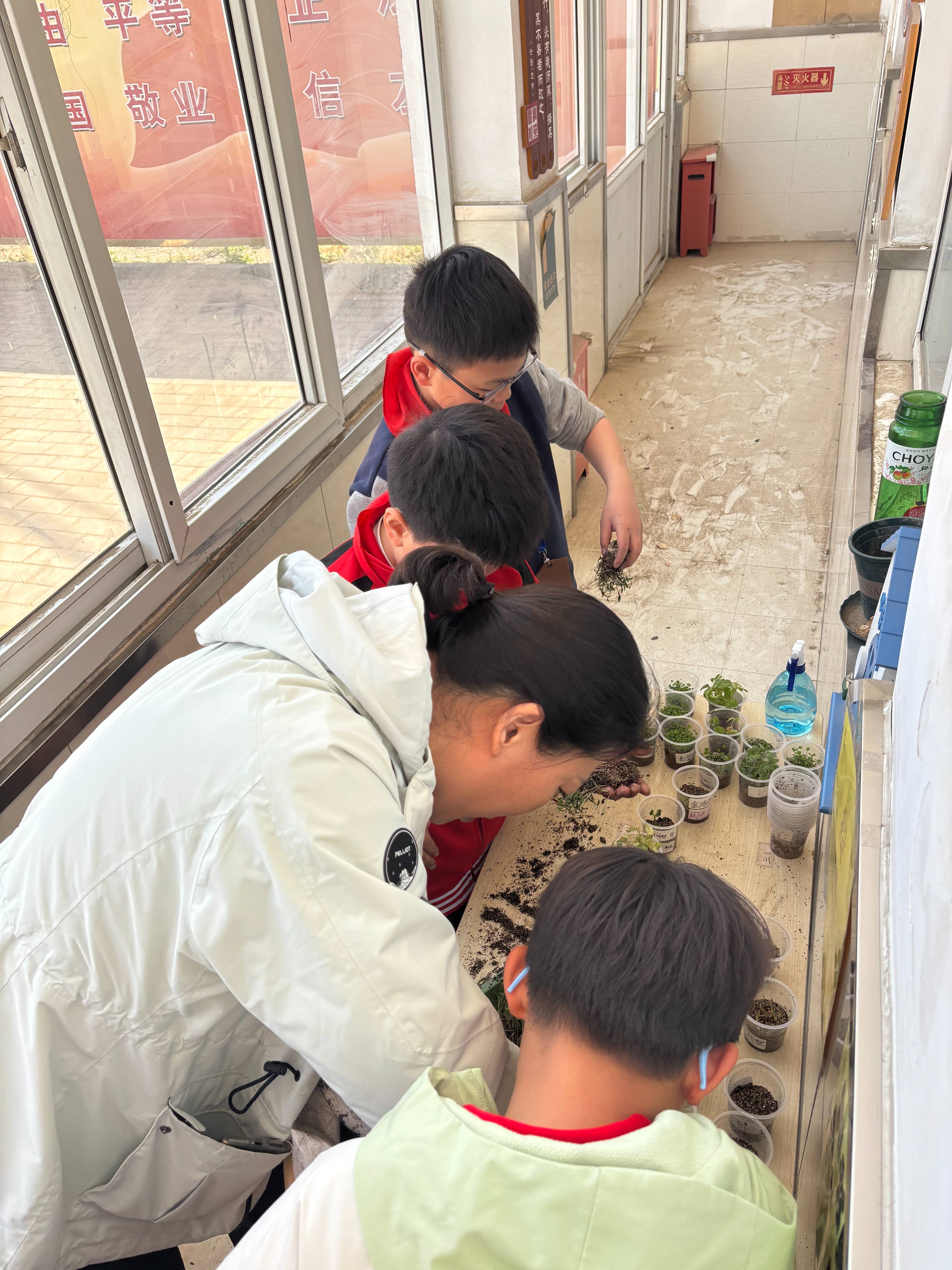 图书馆的建设越来越丰富,尤娜姐带来了土壤,植物有了新家。
