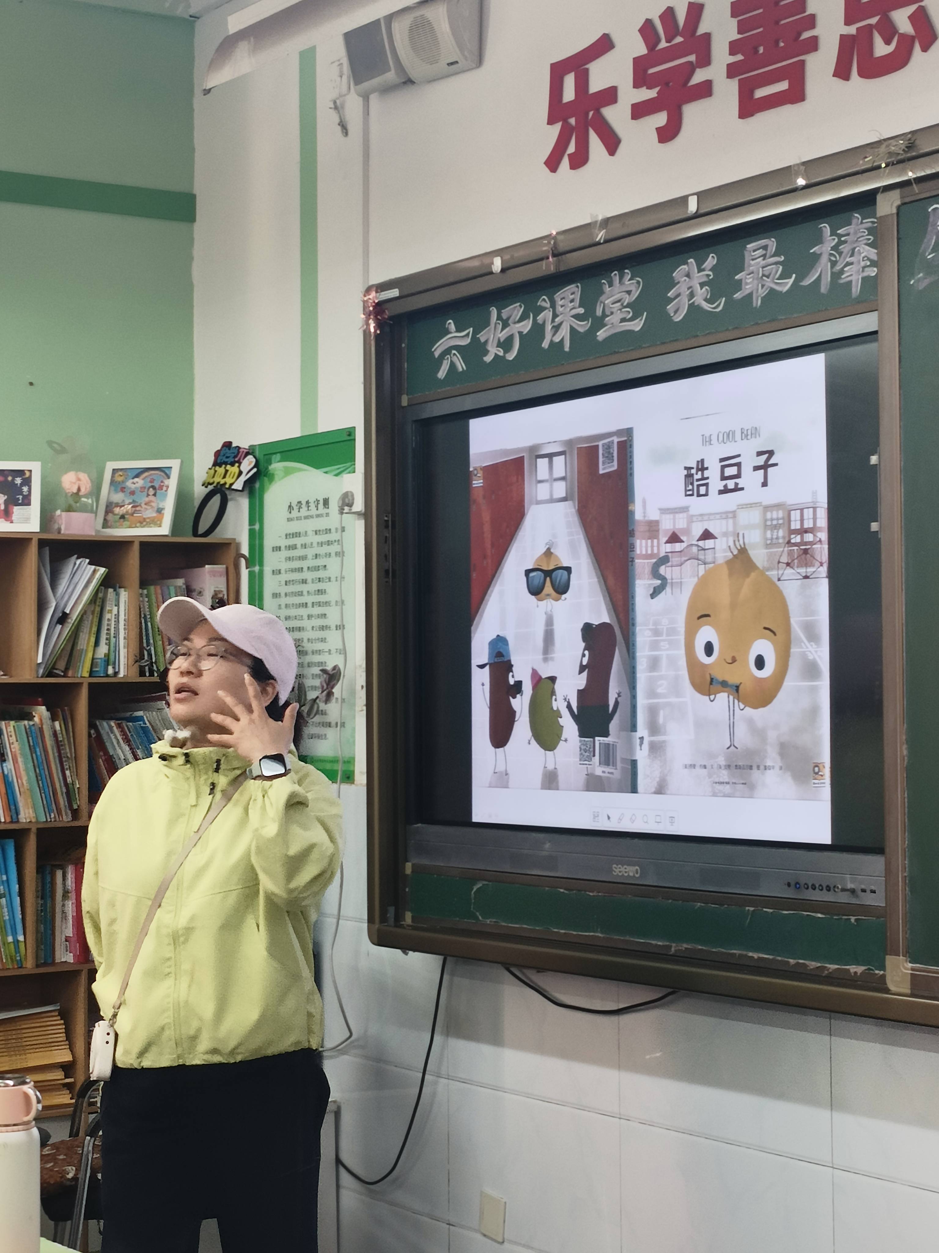 下午二年级的绘本课由我负责,痛痛快快的讲了两个绘本。第一次一边用电脑展示书的ppt,一边讲,和同学们的互动不如举着书讲,还有改进的空间。但课堂气氛还不错,尤其是第一个自然科普的绘本,同学们的互动很积极。