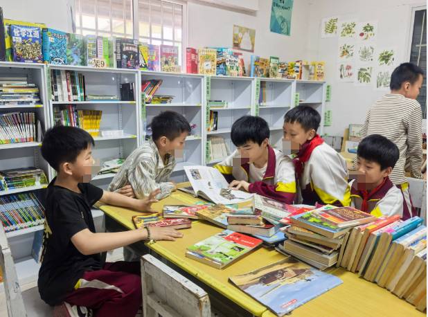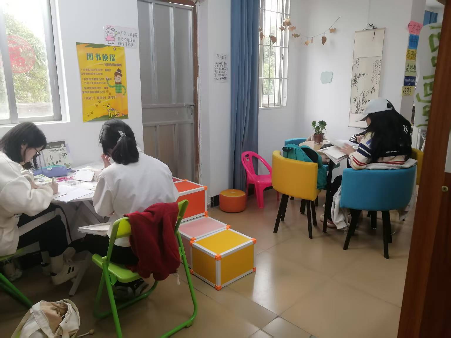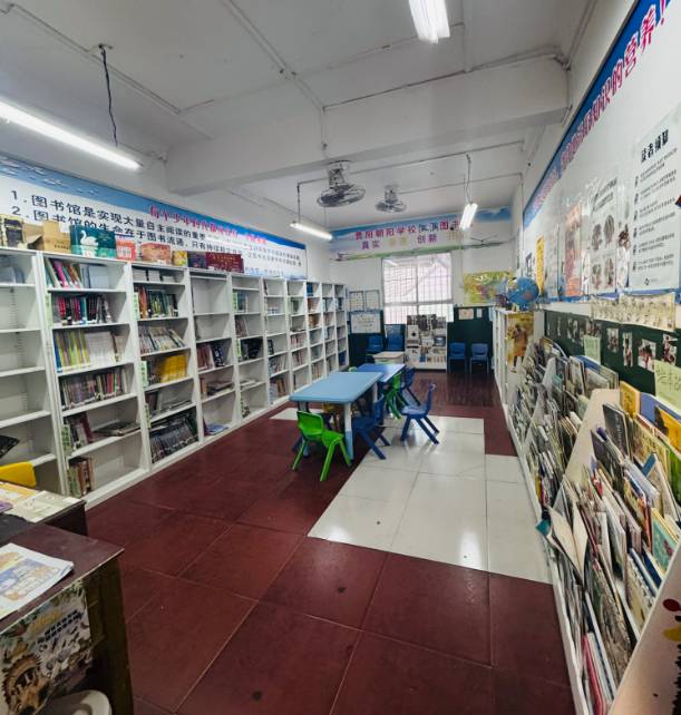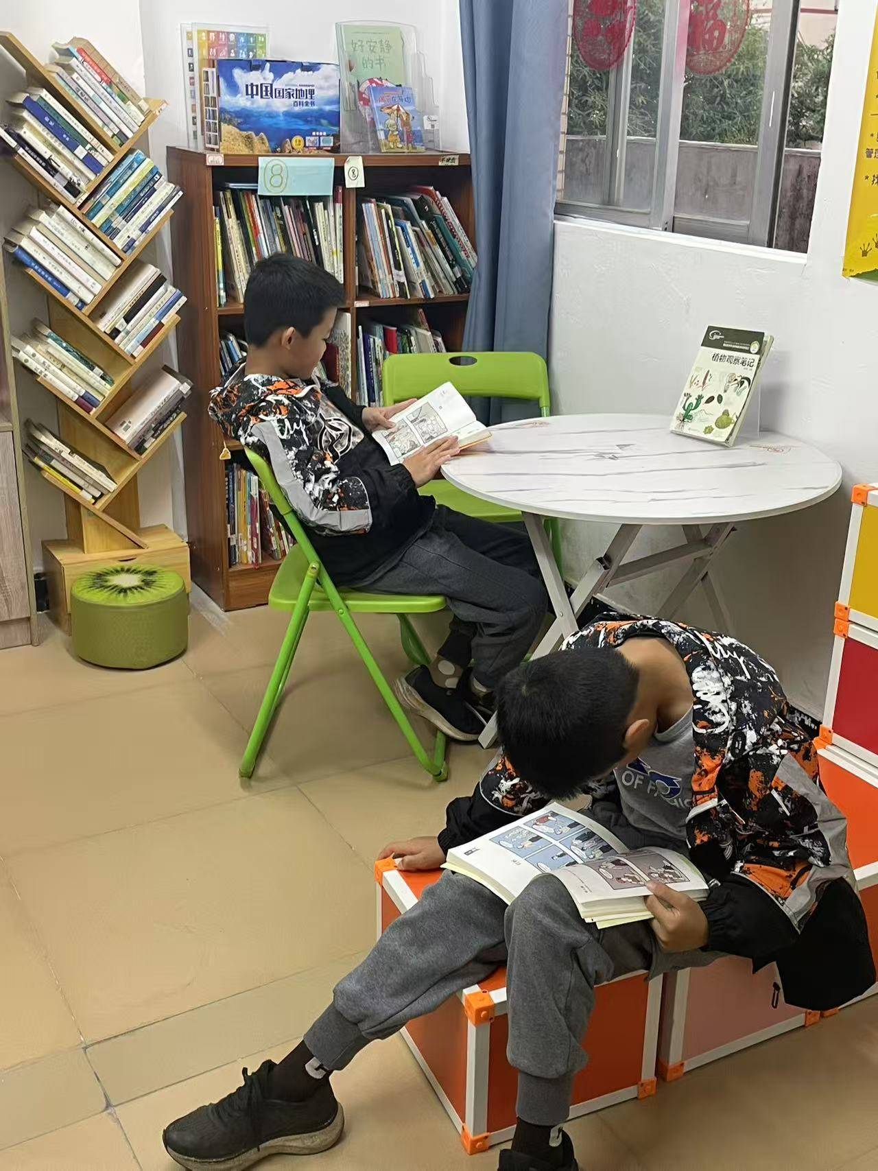 图书馆的书看得出来选得很用心,种类繁多又很齐全,最新的《哪吒》都有了。墙上写着“每个少年时代都应该有个图书馆”,第一眼看到就觉得感慨万分,觉得能参与守护这片小天地特别有意义。