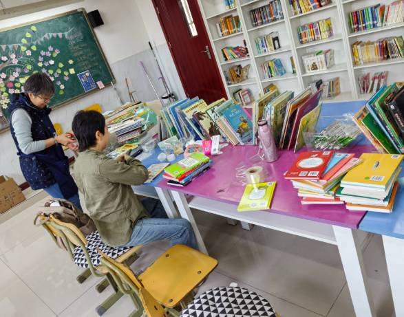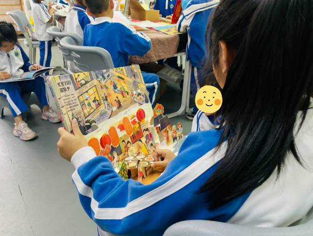 低年级同学很喜欢看立体书,部分上周修复好的内容这周又脱落了,有同学主动拿给我继续做修复。有位小女生很想看立体书,但是看的同学太多了她没能拿到一本,我就鼓励她和其他同学一起看或者先看看其他绘本也很有趣。