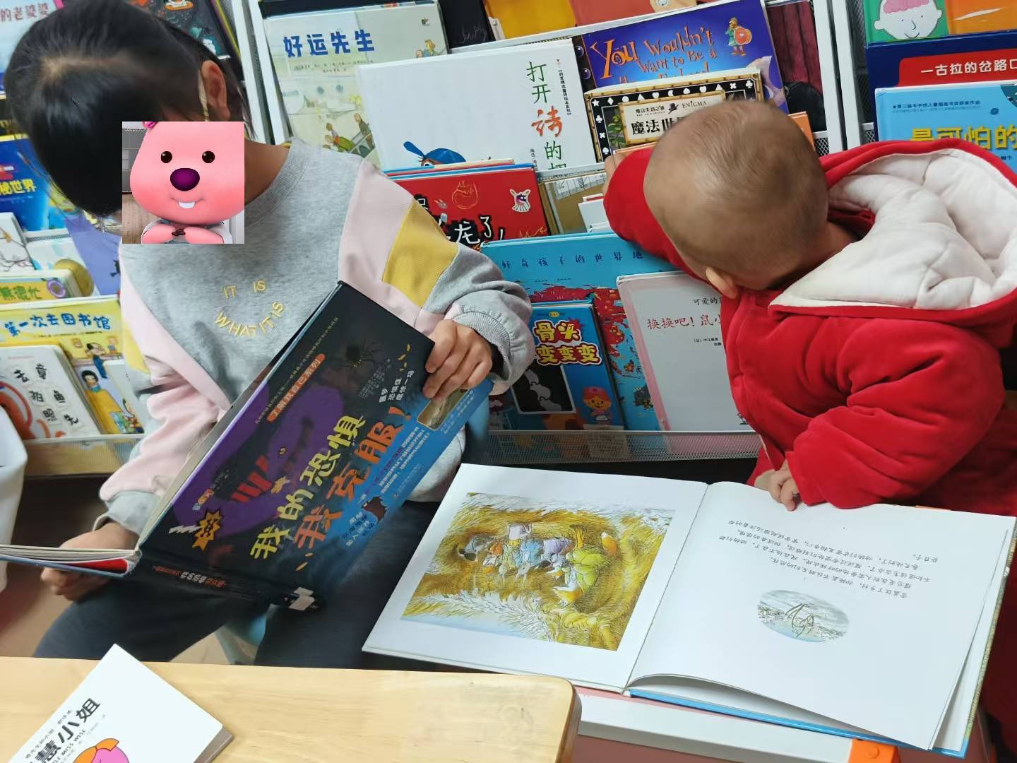 每周必到的两姐弟,弟弟才一岁多,就跟着姐姐一起看书啦!