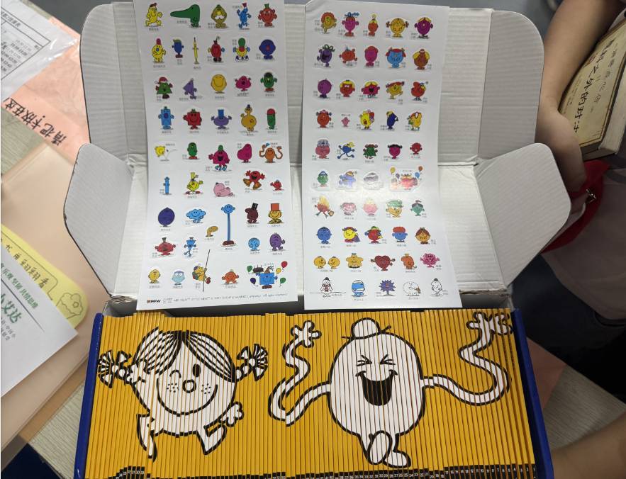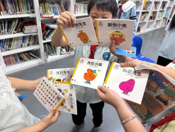 感恩大家在最忙碌的时候出现了,天气变热人也忙的像陀螺,取包裹拆包裹,奇先生妙小姐96本拍照录入。讲绘本干脆现拿一本上去讲,吸引了很多小朋友来借,他们还善于发现规律,有小朋友发现结合在一起就是一幅图。还有很多同学问我,相同名字的先生和小姐是不是CP?还是亲戚?大家你一言我一语地讨论着,还有说应该是堂兄妹这种,然后大家开始找相同CP名字,小小的发现就开心的很。
