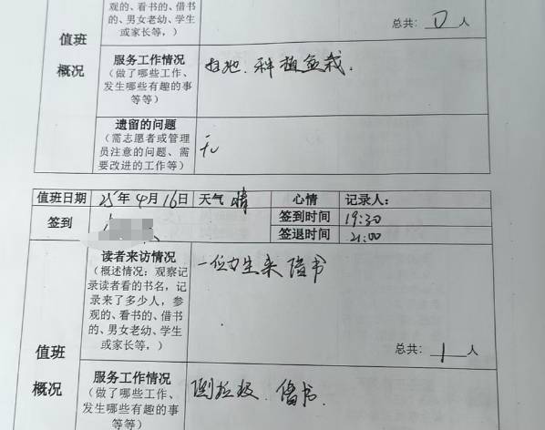 喜欢当纪律委员的小女孩仍然在图书馆帮我们整理书籍,主动请缨纪律委员的有三个小女孩,其中一个女孩把她记录的名字扣分记录给我看,我怕夸的话调皮小孩遭殃,不夸的话小女孩失望,只好说你记录的真仔细。