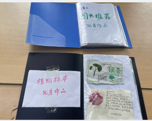 6,绘本课后,三老师把“春天密码”活动中优秀作品挑出来,部分挂上,又找了个文件夹,把“活动一植物标本”放进去了(已满),