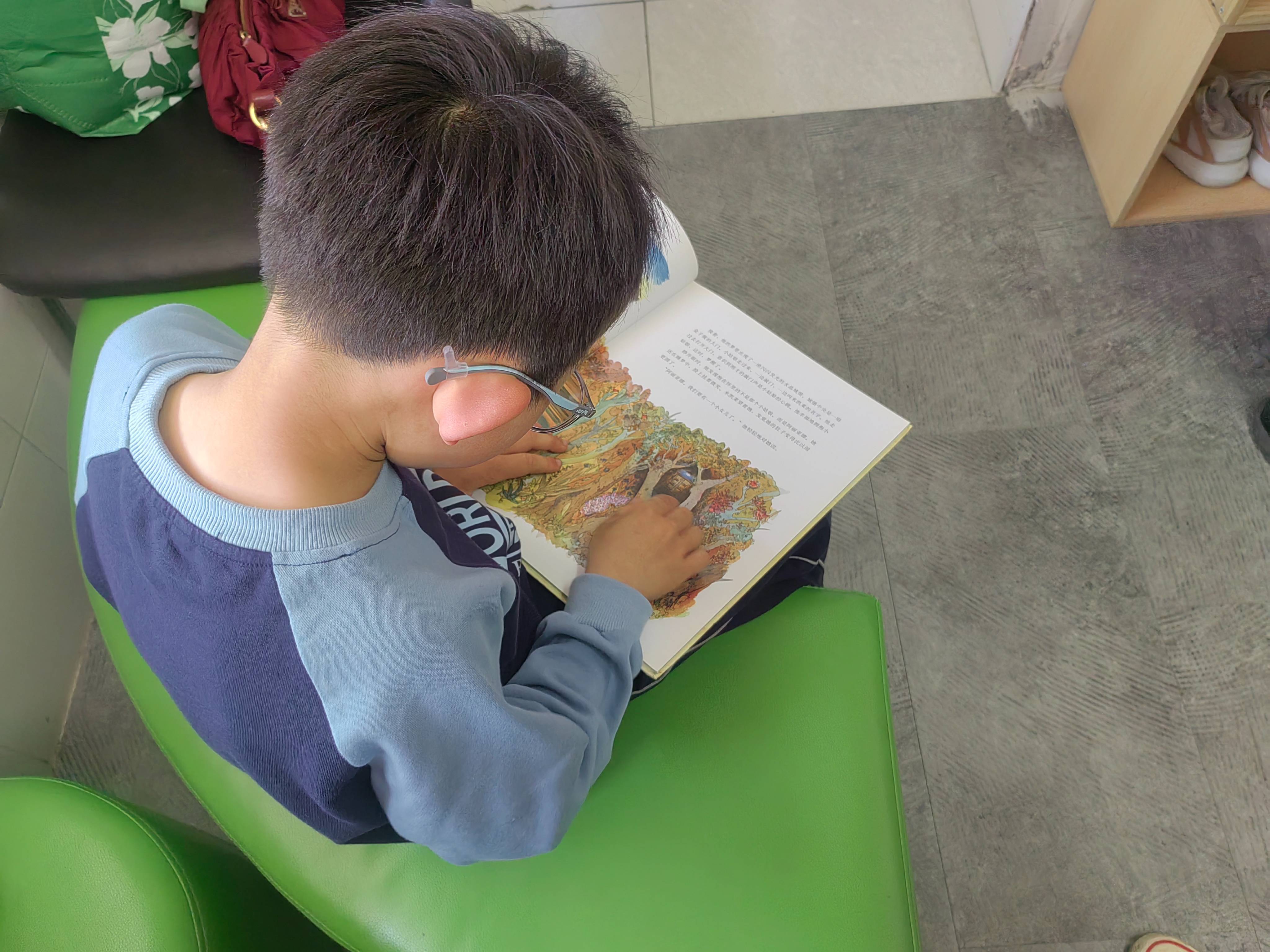 有次和我的好姐妹去值班时,认识了一位很有趣的小女孩,他戴着一副眼镜,瞧着天真可爱,让人喜欢。起初他问我们:“姐姐,你们在这里做志愿者辛不辛苦呀?”和好姐妹对视笑笑后说“不辛苦哒”。我们聊的很投缘,也聊到了一些有趣的书籍,例如《城南旧事》、《小王子》、《夏洛的网》、《屁屁侦探》等,她问我为什么“嗯,城南旧事里的小英子会分不清海和天,好人和坏人呢?”我们想了想告诉她说“因为小英子还小呀,没有见过大海,没有直观的感受到,而且他是个天真善良的好孩子”。我们聊了很多,也想约常见面。