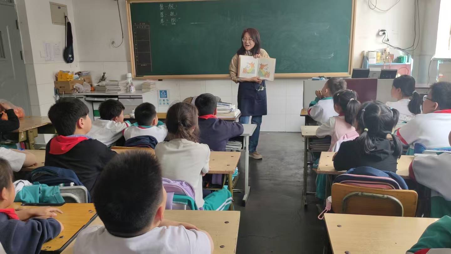 在二年级3班,和禹老师一人讲了一个故事。课堂气氛活跃,松弛有度,课后孩子依然来馆里借还书。