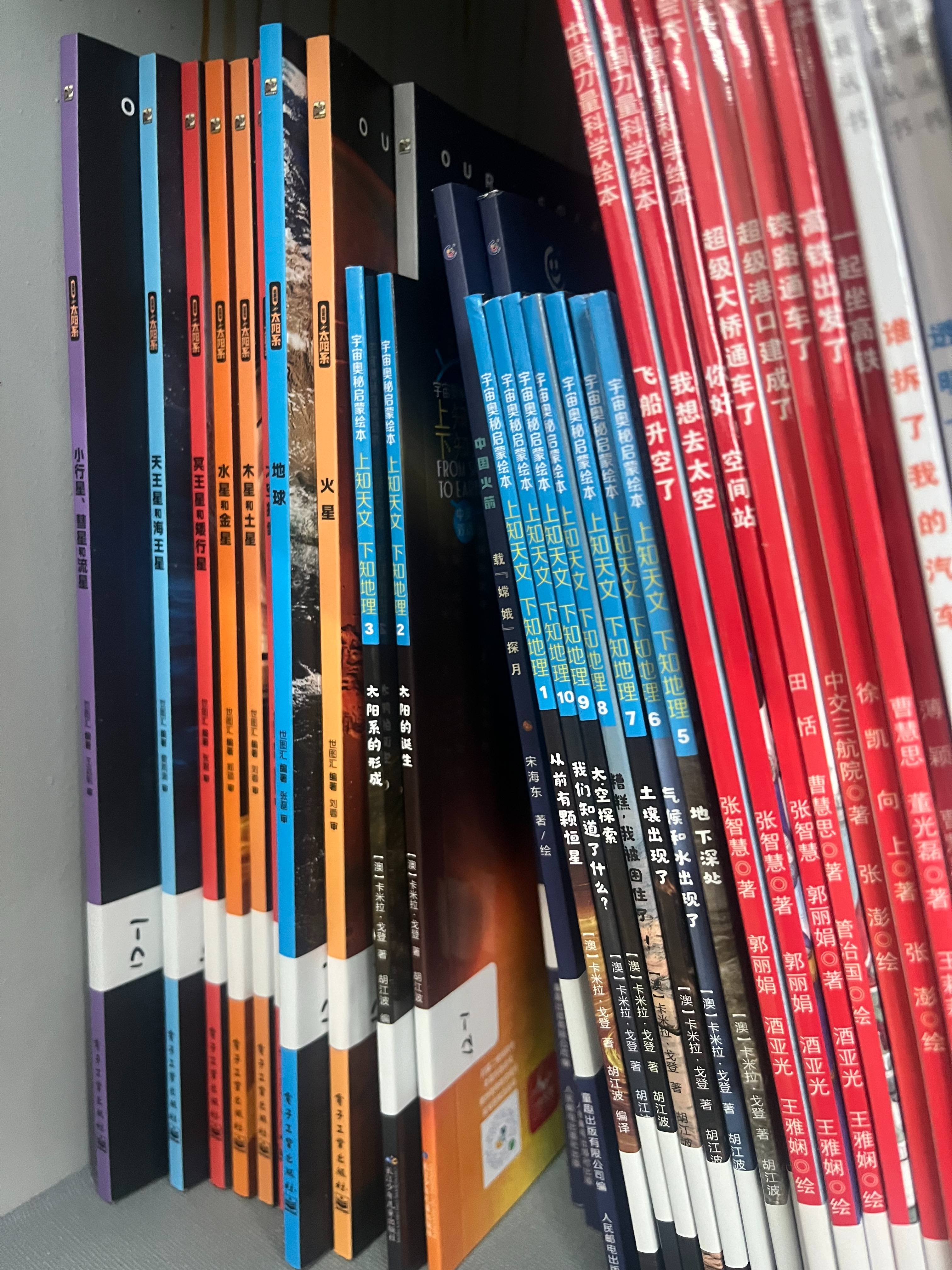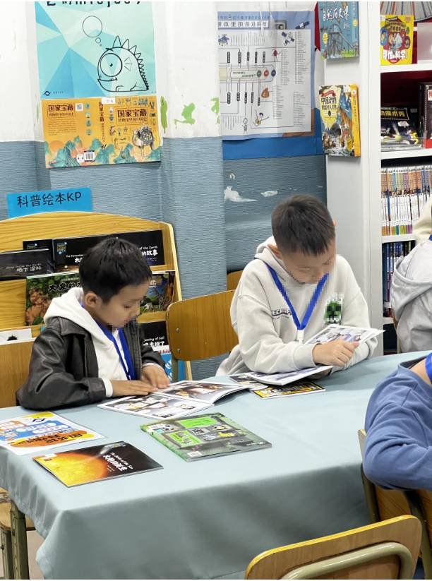 10点10分的大课间,主任广播了图书馆开馆的通知:“咱们学校从今天开始有图书馆了!……”从一年级开始,各班班主任依次带着全班来馆里——班主任现场把借阅卡发给同学们,我们向同学和老师介绍图书馆的使用方法,然后开始挑自己想借的书。因为宣讲的时间比较充裕,同学们基本一次就搞清楚了图书馆规则和借还流程。也有两位同学挑完书之后沉迷看书,上课铃响直接拿走了,下一个课间突然想起来还没扫码,赶紧拿回来让我们扫。