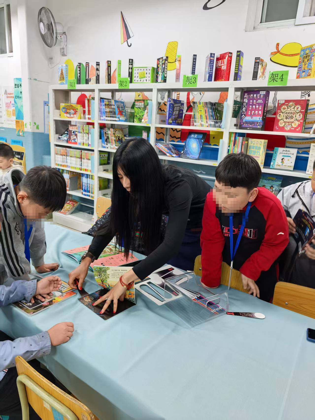 丽丽到了以后就开始忙,联络老师安排各个班级依次来到馆里,给孩子们发放提前制作好的读者卡,讲解借阅规则等事项。讲解完,孩子们挑选自己喜爱的书进行借阅。