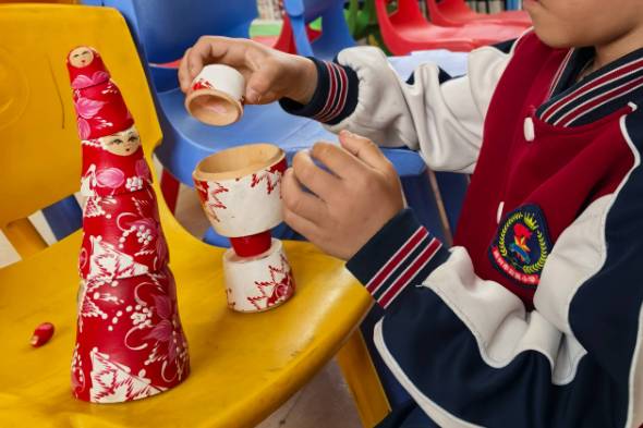 最后一节课三一的课,晞君和宏云一起去班里。我在馆里,cgw小朋友在这里玩套娃,一个人安安静静的玩的挺好。我和他聊聊天,和他一些有了链接,感受到了小孩的简单,稚嫩,纯真和美好。