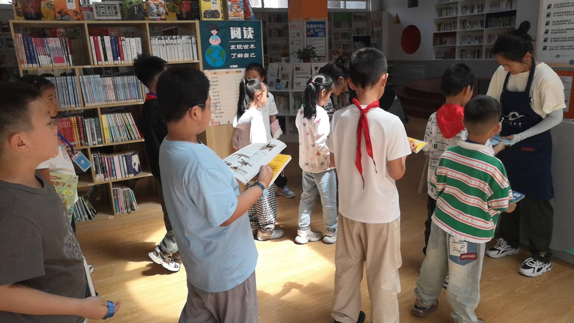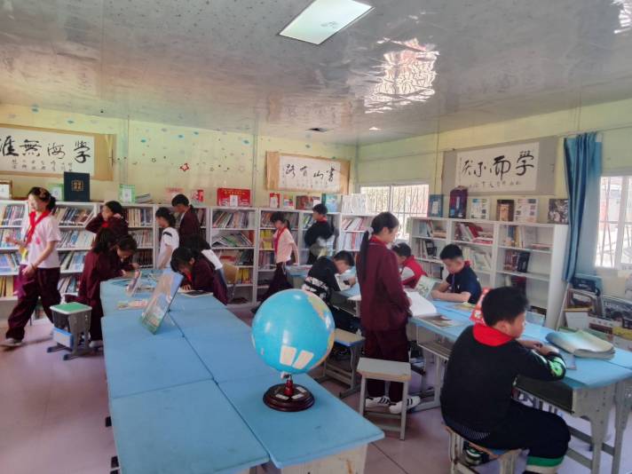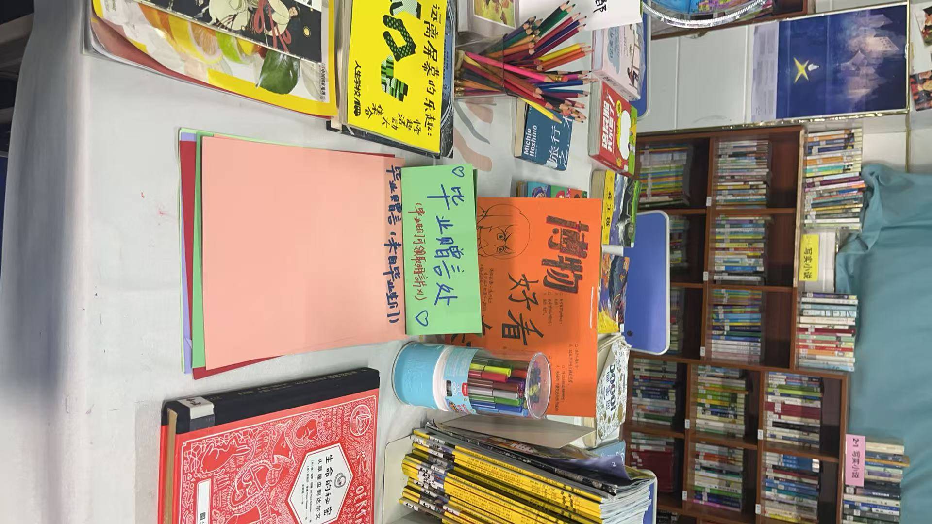 一早到馆把馆内卫生简单收拾一下,等待孩子第一节下课后到来;也许五一放假还没玩儿够,第一节的课间借阅的学生不太多,馆内我一人也能忙过来,午饭后的高峰期,随然又来了两位志愿者,也不是很忙。