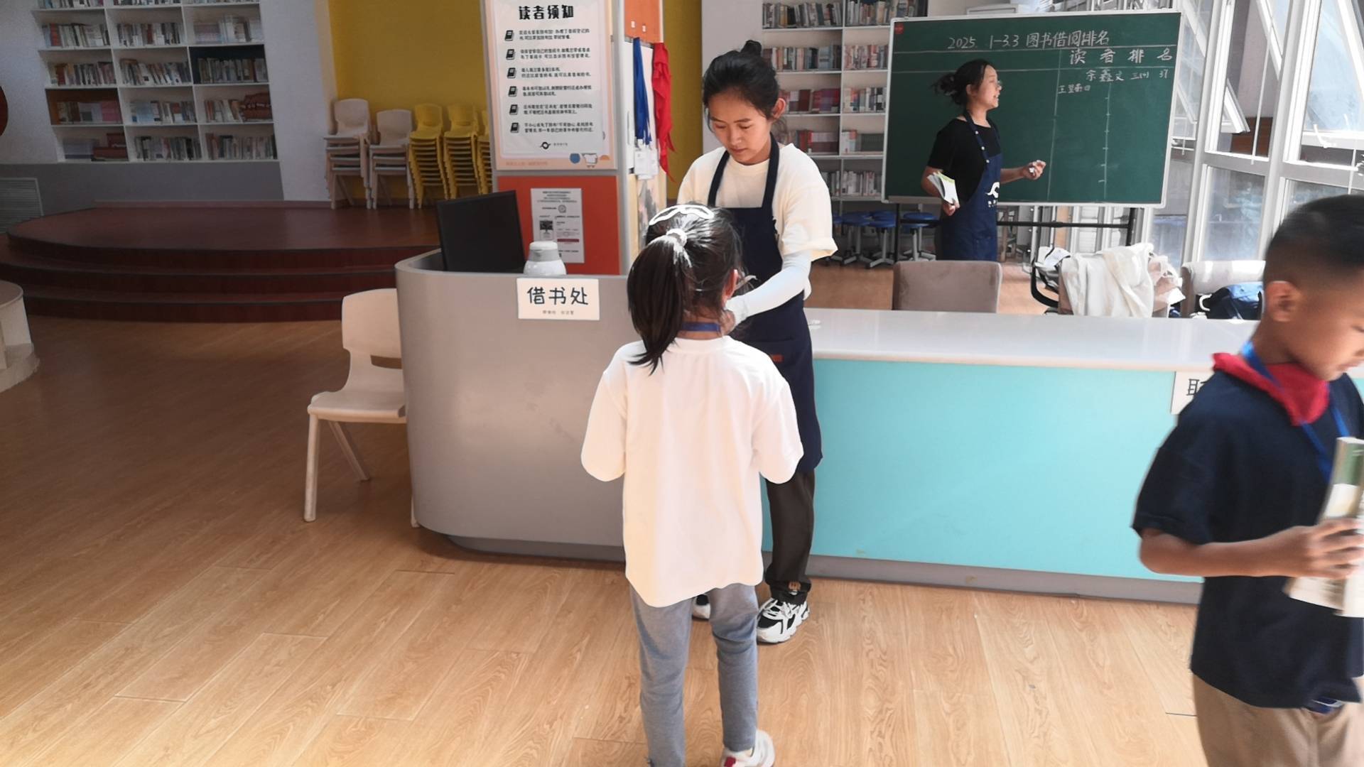 值班时,我完成图书整理、借还登记,保证书籍有序归架,维持借阅秩序,同时也帮助完善书籍信息。不过,也存在不足,部分孩子喧哗难劝,今天的书籍的推荐活动宣传的也不够到位。