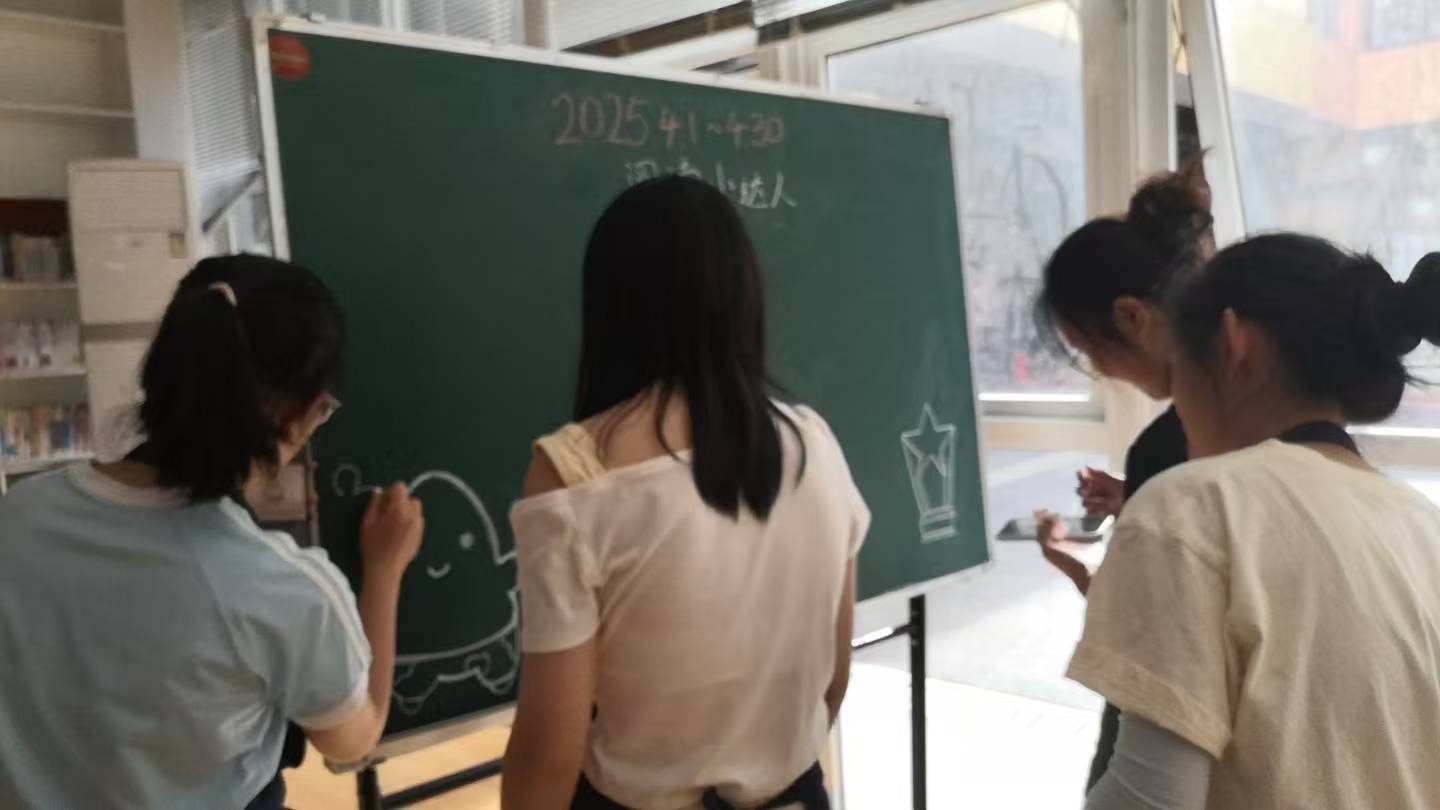 今天又是新的一月借阅的开始,又要给学生做借阅排名了,刚好这个事儿有工大两位志愿者帮忙做,下午又来了两位工大的志愿者,我给她们说明排名的意思,她四人配合很好,写的写,画的画,不一会儿的功夫,借阅排名情况就做好了,难者不会,会者不难啊!