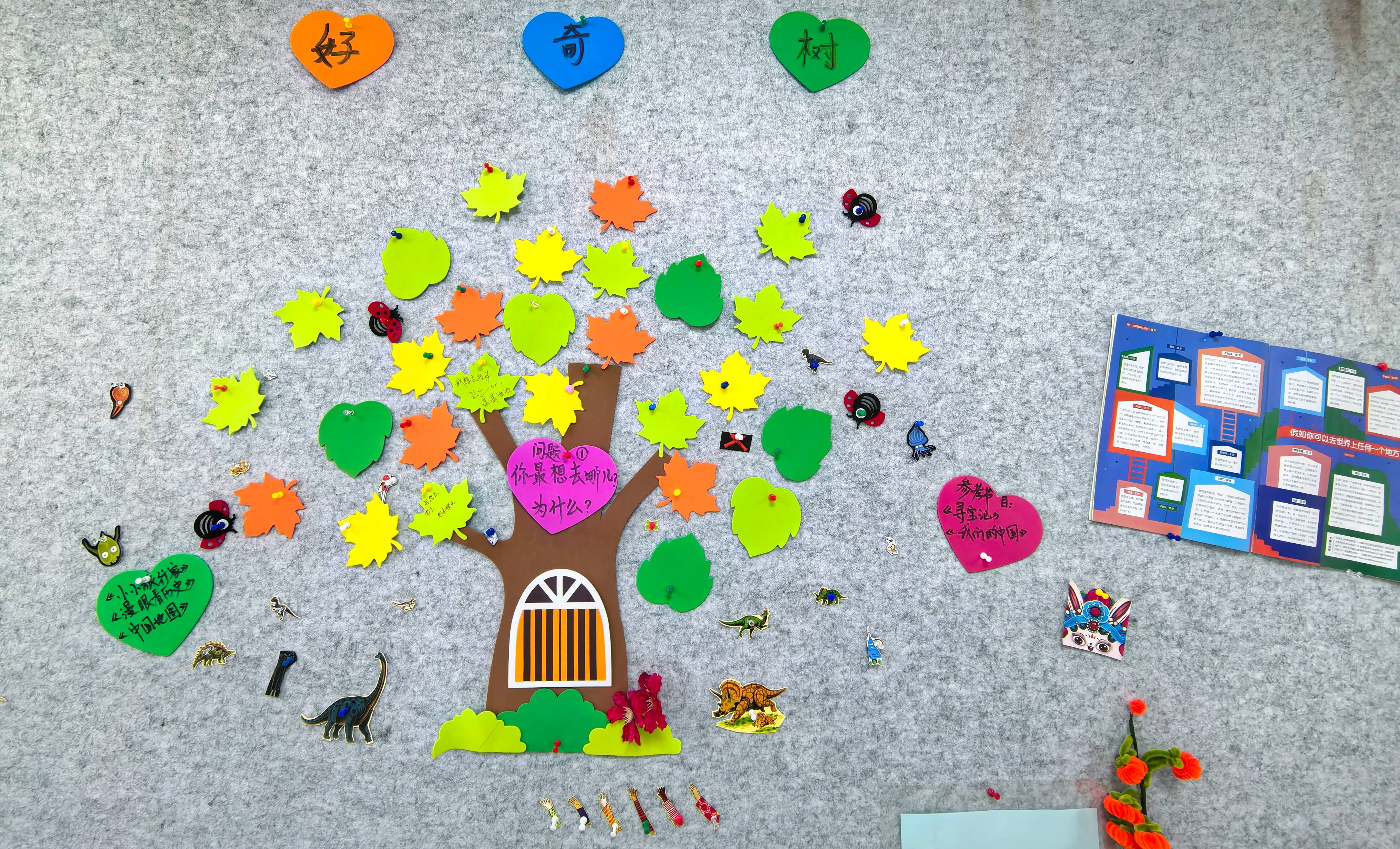 好奇树活动布置完毕,今天的第一个主题引起了大家的热情回应,树叶已经很茂盛了。我们发现答案中有一个出现率比较高的就是自己的家乡,看样子思乡之情在任何年龄都是很深的哦……