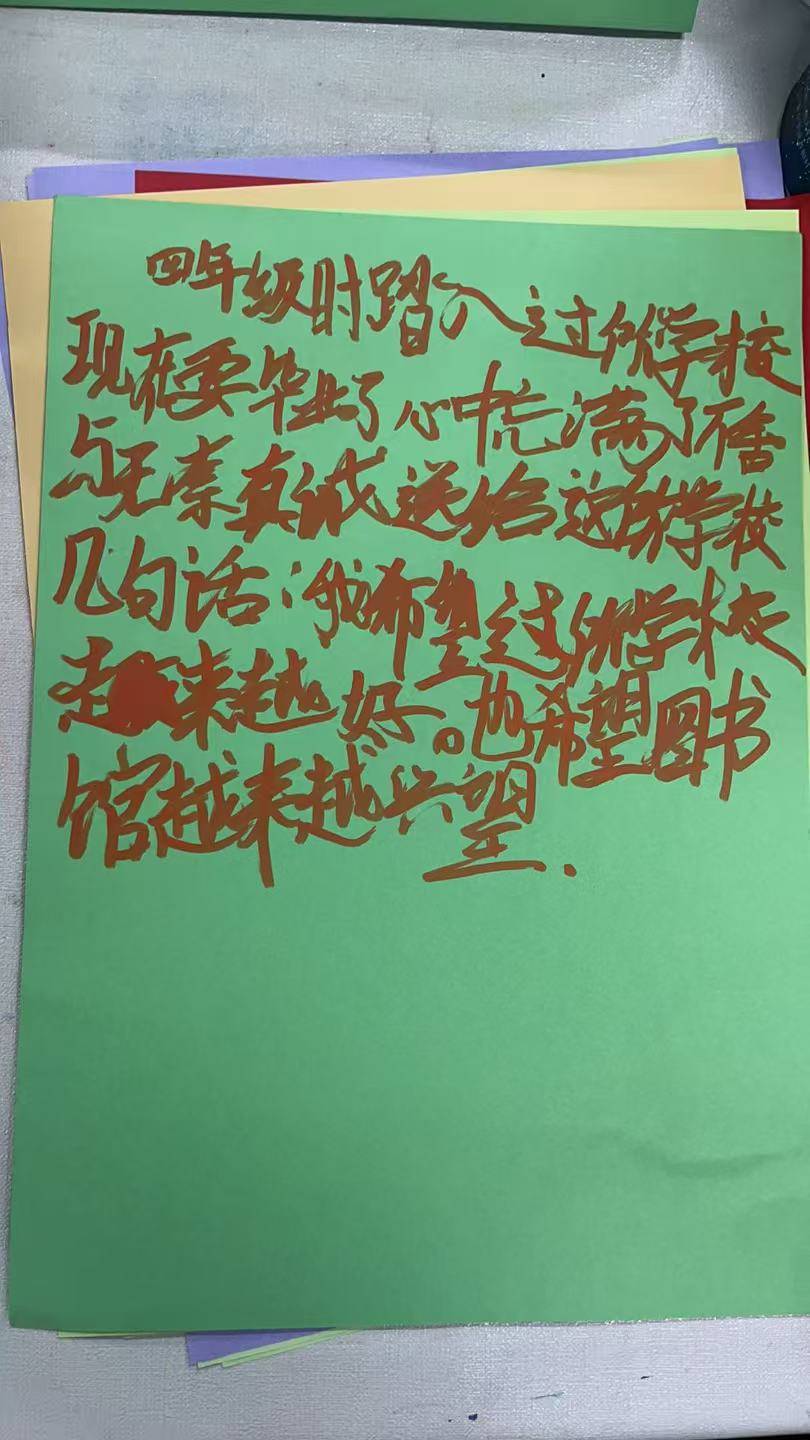 让人感动的是罗同学,她上周许愿了两本教漫画的书,被我们的馆员winny认领了,假期里书就已经寄到学校了。今天一早她就来借这两本书了,快放学的时候瓢泼大雨,她冒着雨把两本书还回来,怕弄湿了还特意用衣服包起来,自己湿透了书却没有湿。这次她许愿了咒术回战的书📖写在心愿墙上了。