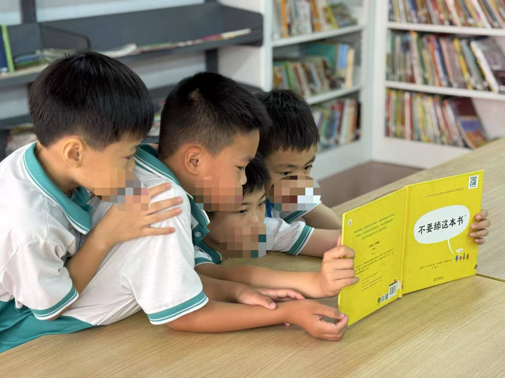 11点刚过,下课铃响起。一位同学看到图书馆的门开了个小缝,便探头探脑地推门而入。当得知已经开馆可以来看书时,他兴奋地朝教学楼大喊:“开馆啦,可以进来图书馆看书啦!”于是,小朋友们鱼贯而入。他们依然喜欢三三两两地聚在一起~
